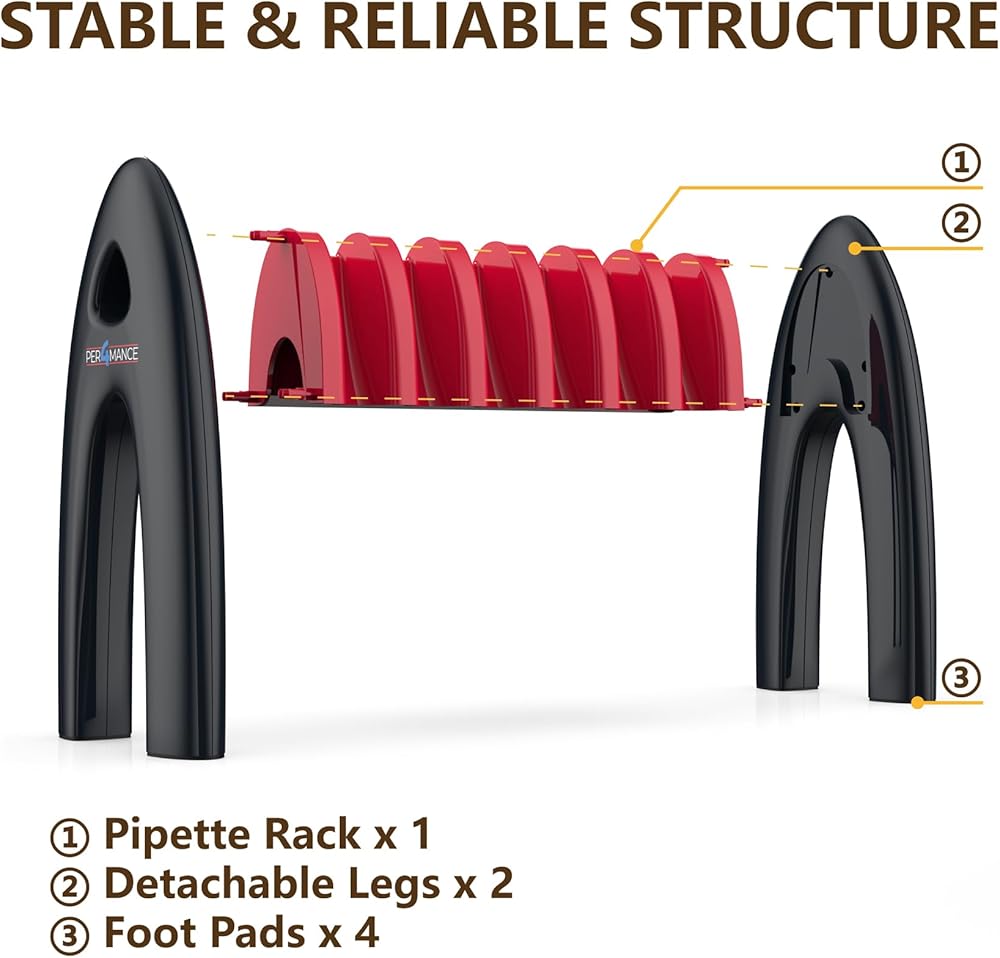 حامل ماصات المختبر، حامل ماصات مدمج ذو 6 فتحات، رف ماصات دقيقة (الماصات غير متضمنة)