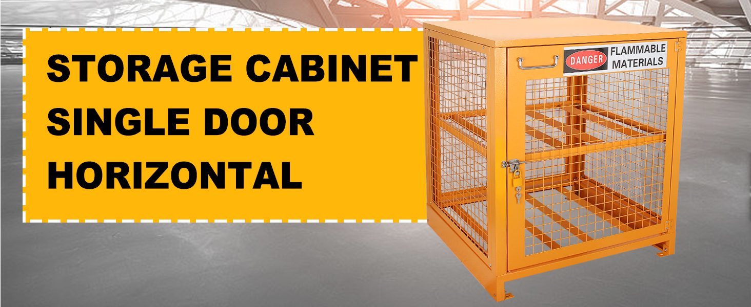 خزانة تخزين أسطوانية أفقية، سعة 4 أسطوانات، 31 بوصة طول × 30 بوصة عرض × 35 بوصة ارتفاع، طلاء مسحوق أصفر، مناسب لأسطوانات غاز البترول المسال 3,5,11,20,30 و33 رطلًا