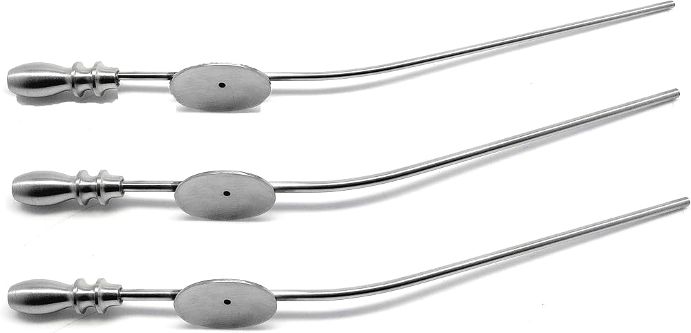 3 Pieces Baron Tubes Set Includes: (1)… Baron Tube #3FR, Size 1mm. (2)… Baron Suction #5FR, Size 1.7mm. (3)… Baron Tube #7FR, Size 2.3mm. Baron Suction Tube is an ENT instrument used for suctioning within narrow spaces, such as the ear canal. Suction can be controlled by covering a small hole that is located on the thumb plate slightly above the handle. There is a slight angle to the instrument so that the user's hand does not obstruct the view of the area being suctioned.