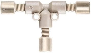 PEEK Low-Pressure Unions, Tees, and Crosses hold up to 1000 psi (1/16" tubing), or to 500 psi (1/8" tubing). PEEK flangeless fittings included. Models 02008-00, -10, and -20 take 1/16" OD tubing; models 02008-04, -14, and -24 take 1/8" OD tubing.