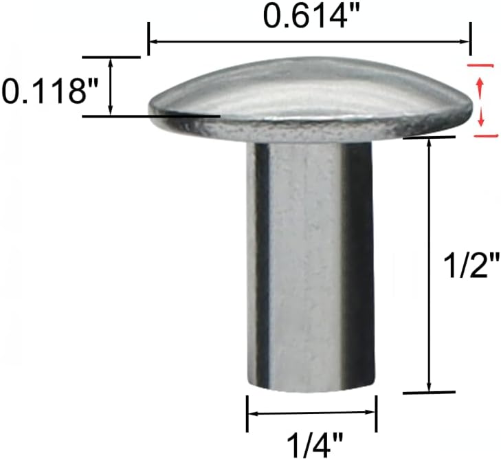 1/4 بوصة قطر × 1/2 بوصة طول رأس نحاس مسامير ألومنيوم صلبة، برشام صلب مانع للتسرب 0.25 بوصة قطر 0.5 بوصة طول، مسامير قارب من الألومنيوم، نحاس معدل، برشام رأس مستدير/قبة، 100 حزمة