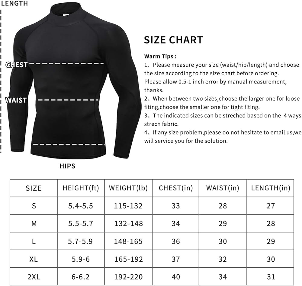 【مناسب لجميع المواسم】يتميز التي شيرت الرجالي المضغوط ذو الرقبة الطويلة بالتميز في الطقس الدافئ أو البارد، ويضمن التجفيف السريع، ويمنع الملابس من الالتصاق. ابق مرتاحًا وجافًا، بغض النظر عن الموسم.