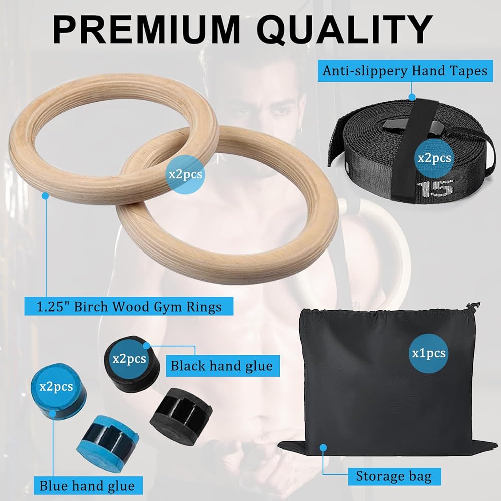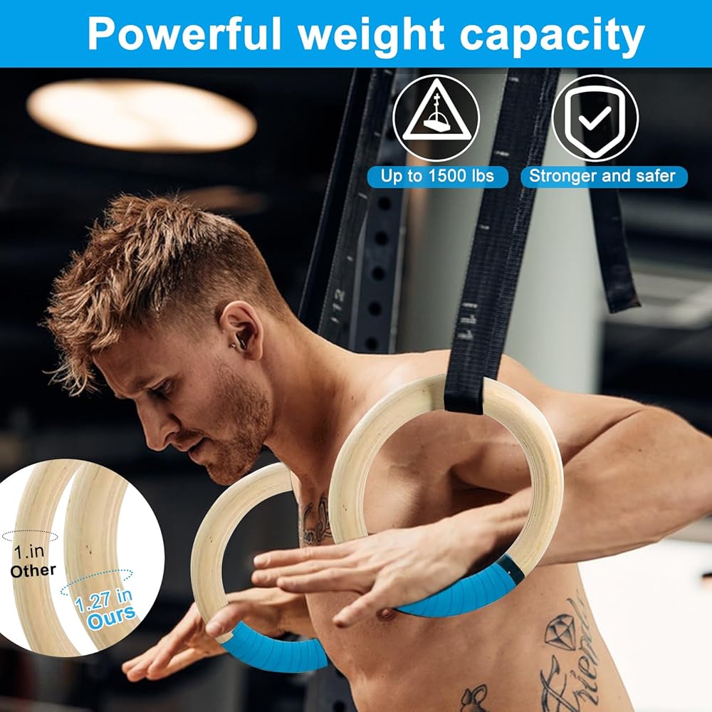 سعة متينة تصل إلى 1500 رطل - مصنوعة من خشب البتولا بسمك 32 مم، حلقات الجمباز هذه مصنوعة من مادة طبيعية فاخرة معروفة بالمعدات الرياضية الراقية. تدعم الحلقات ما يصل إلى 1500 رطل/680 كجم، مما يضمن أقصى قدر من الأمان والمتانة.