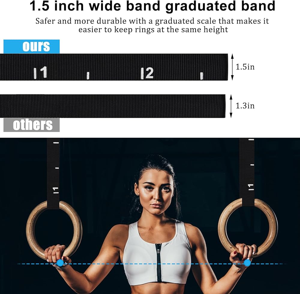 حلقات الجمباز حلقات أولمبية خشبية، حلقات رياضية بوزن 1500 رطل، مشبك كام قابل للتعديل مع مقياس بطول 15 قدم، حزام طويل للتمرين في صالة الألعاب الرياضية المنزلية لكامل الجسم