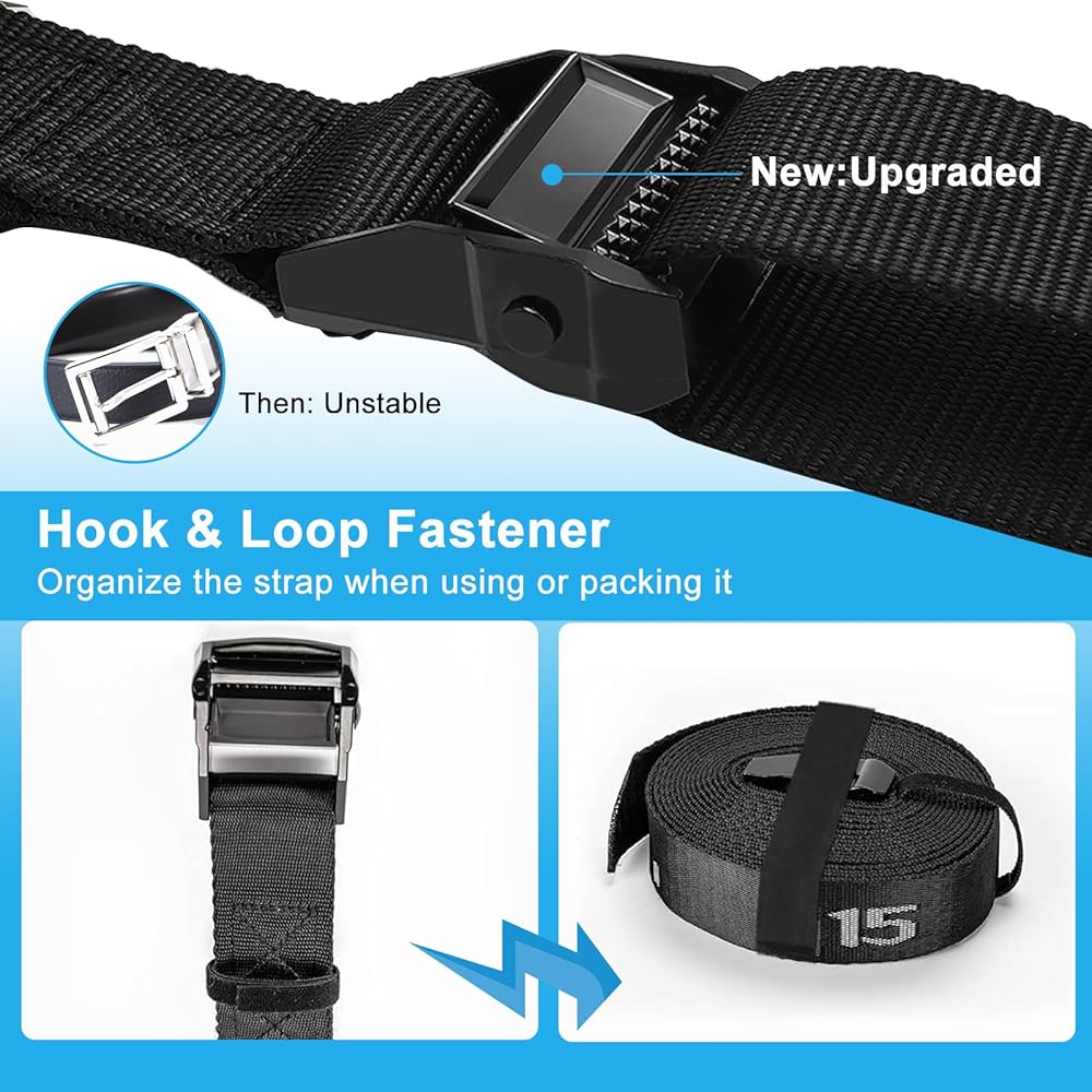 أشرطة مرقمة قابلة للتعديل بطول 15 قدمًا - الأشرطة التي يبلغ طولها 15 قدمًا وعرضها 1.5 بوصة سهلة التركيب وتتميز بأرقام متماثلة لإجراء تعديلات سريعة، حتى أثناء التمرينات. وفر الوقت وتجنب المتاعب من خلال العثور بسهولة على الارتفاع المثالي لتمارينك.