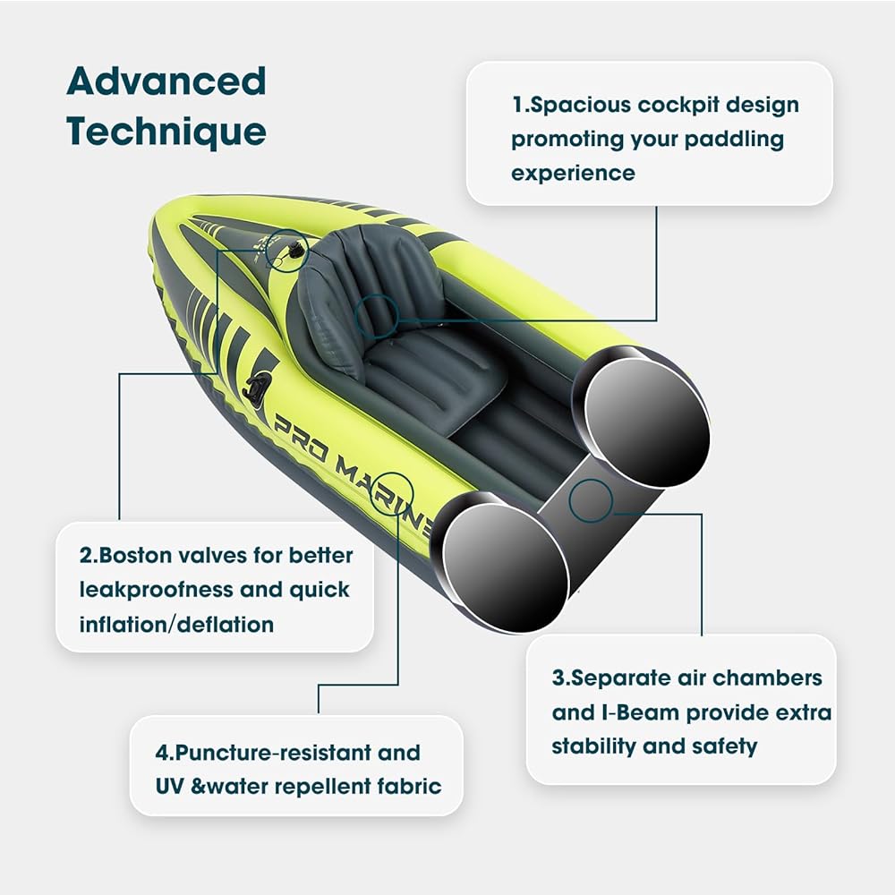 • Premium Quality: Crafted with top original material and advanced production techniques, this inflatable kayak is highly durable and puncture-resistant, making it suitable for various water environments.