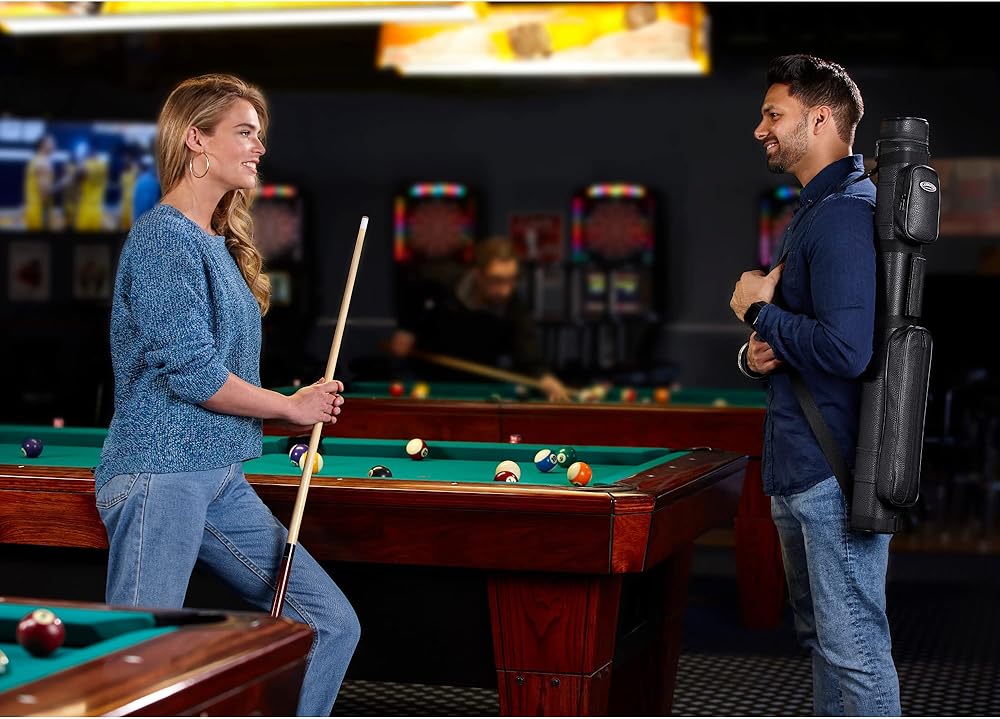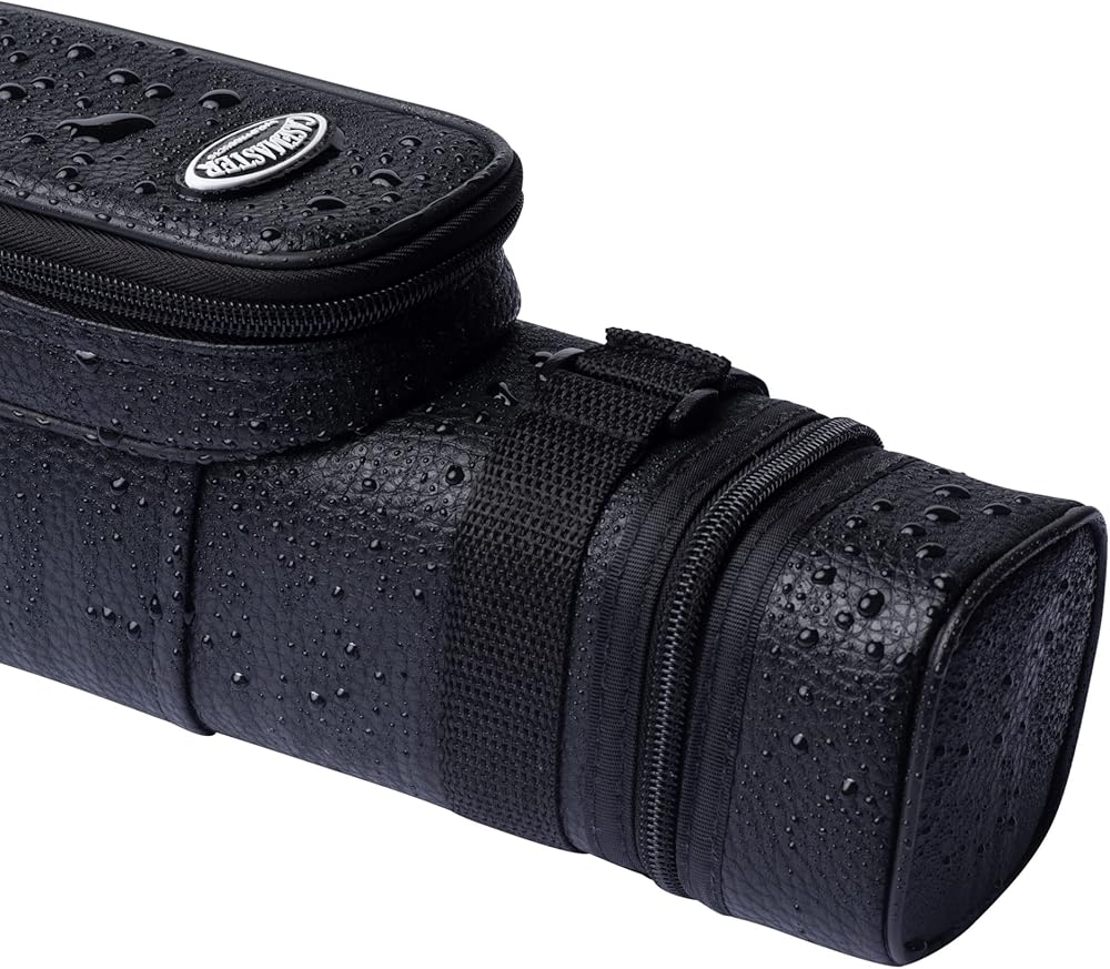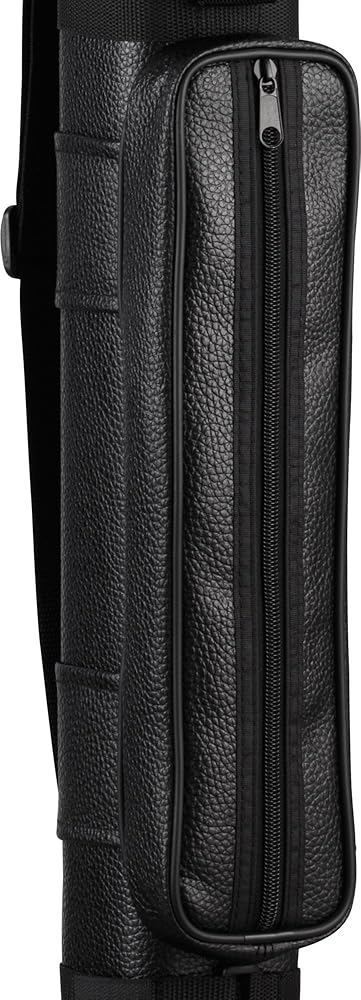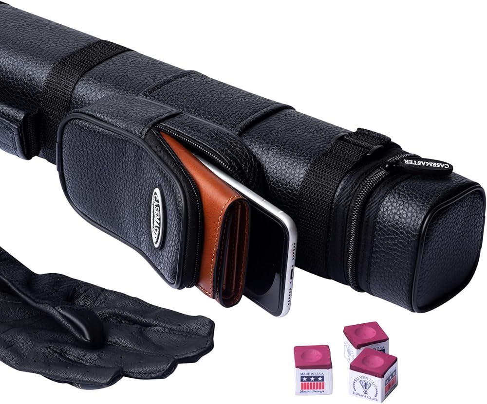 The ultimate solution in cue transportation is Casemaster Q-Vault, with its classic leatherette exterior engineered to repel the elements and keep your cues in the perfect dry conditions and safeguarding them from warping. Inside, the hard resin shell is covered in a soft cloth lining, bolstering your cues against heavy impacts and preventing cracking and breaking. The Q-Vault is your total solution for a night out at the pool hall or your buddy's man cave as it has two large pockets that are perfect for holding all of the accessories you might night to dominate the competition, such as extra tips, shapers, chalk and other repair tools. The Q-Vault features a handy carrying handle and strap for convenient, easy transport. Able to store two butts and two shafts, the Q-Vault allows you to keep your options open when you're at the table.