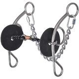 The Reinsman Josey Million Dollar Bit has won a lot of money for many riders. This bit features a stainless steel 3-piece twisted wire dog bone snaffle mouthpiece and a rope noseband. Equipped with a 5" shank, the Million Dollar bit is ideal because the pressure is evenly distributed on the nose, bars, corners of the mouth, curb, and poll. This bit is one of our all-time proven favorites at the Josey Ranch. Use this bit for achieving the all-important flex you need from a well-balanced bit, or pick the Prime Time for the same bit with some extra flash. Stage D is about refinement, subtle cues, and quick communication. Characteristics include increased leverage, more sophisticated mouthpieces, and may also incorporate higher ports. - Bit Style: Combination; - Bit Stage: Stage D (Expert Neck Reining - Subtle, quick communication); - Mouth Size: 5" Mouth; - Mouth Diameter: 5/8"; - Mouth Type: 3-Piece, Dogbone, Twisted; - Nose Type: Rope Nose; - Endorsed By: Martha Josey - Ty Mitchell; - Horse Size: Horse.