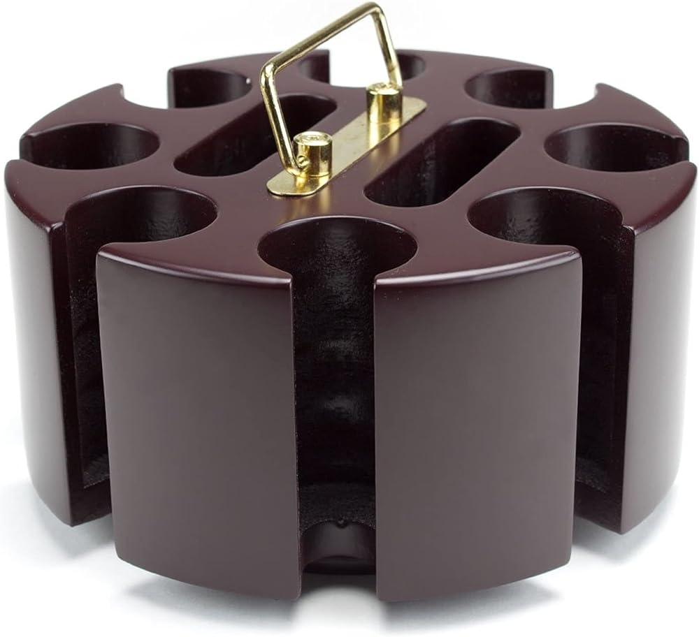 Take poker night to a whole other level with this 200 count rotating poker chip carousel from Brybelly. This wooden carousel can store classic clay chips for a variety of casino and gambling games, including TX Holdem, Omaha, craps, blackjack, and more. Any betting game is a good fit, and this carousel works equally well on a coffee table or a custom poker table.
