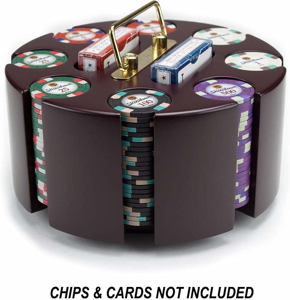 Jackpot: This rotating wooden carousel supports a case of 200 classic poker chip sets, ideal for a family game or poker night