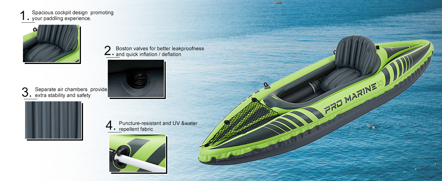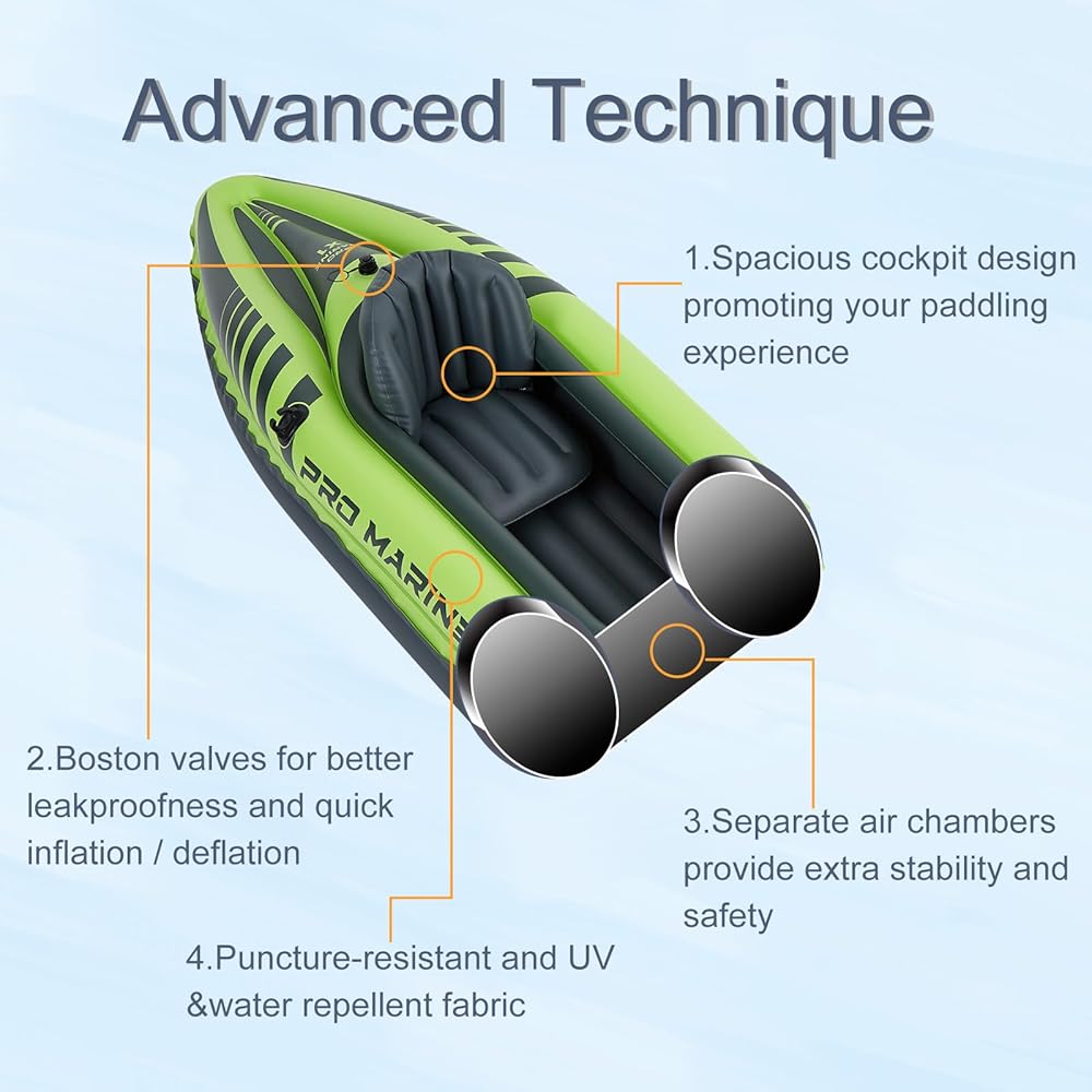 جودة فاخرة: مصنوع من مواد أصلية عالية الجودة وتقنيات إنتاج متقدمة، هذا الكاياك القابل للنفخ متين للغاية ومقاوم للثقب، مما يجعله مناسبًا لبيئات المياه المختلفة.