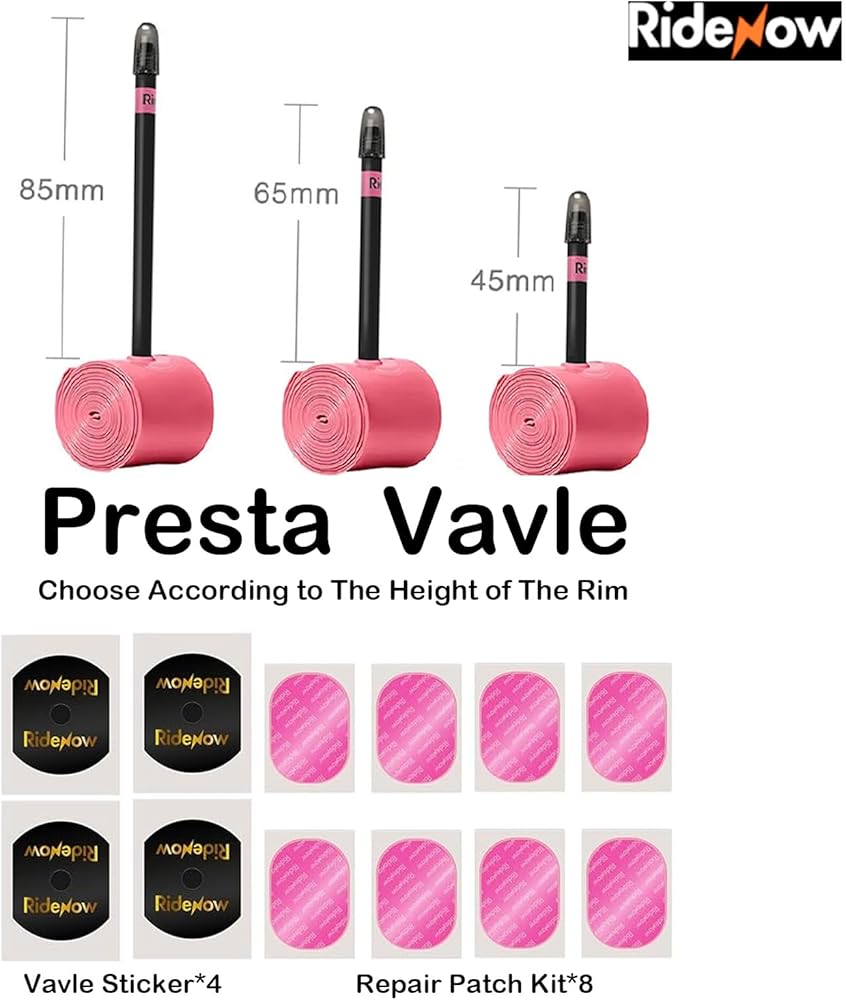 خيارات متعددة لطول الصمام: متوفرة بصمامات بريستا 45 مم، 65 مم، و85 مم، يمكنك اختيار طول الصمام المثالي ليتناسب مع حواف دراجتك.