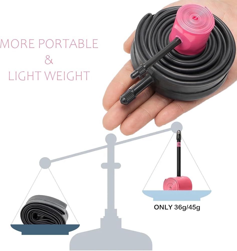 وزن الريشة ومتينة: مصنوعة من تقنية البولي يوريثين الحراري المتقدمة (TPU)، تزن هذه الأنابيب 36 جم فقط (700x18-32C) و45 جم (700x32-47C). إنها توفر التوازن المثالي بين المتانة والتصميم خفيف الوزن، وهي مثالية للسباقات التنافسية وركوب الخيل اليومي.