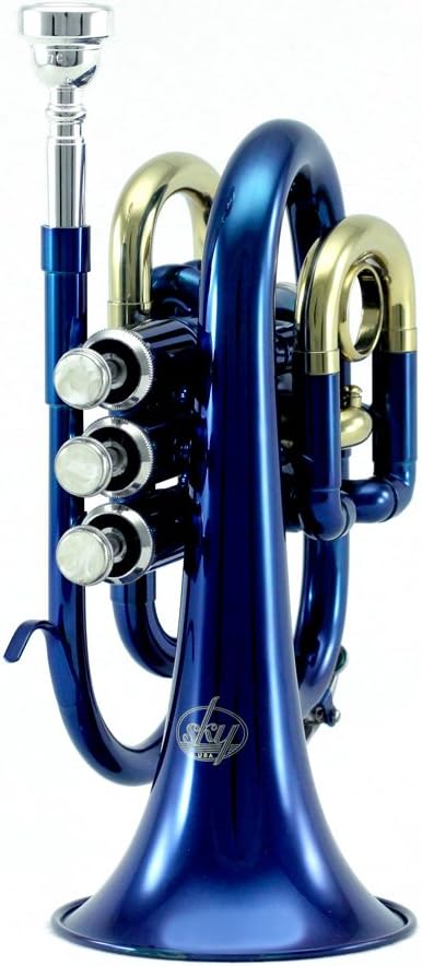 Sky Band Approved Brass Bb Pocket Trumpet with Case, Cloth, Gloves and Valve Oil, Top Quality Sound This trumpet is beautiful and well engineered, precise fits and perfect round tubing resulting in less turbulence and smooth air flow. One time drawn body, therefore there are no seams found on this high grade dual tone trumpet. The exquisite durable case made with velvet lined interior, elegant and stylish. Perfect for beginning to professional trumpet player.
