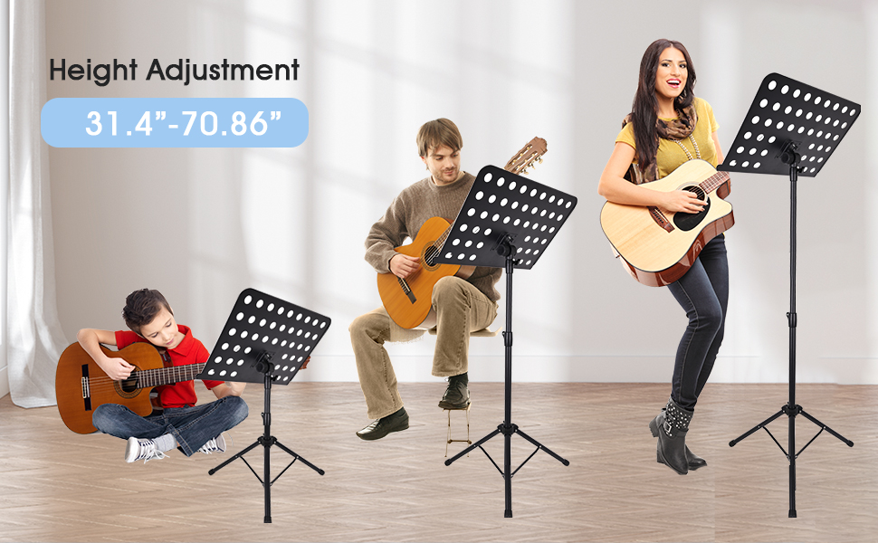 【ارتفاع قابل للتعديل من 31.4 بوصة إلى 70.86 بوصة】يمكن تعديل ارتفاع حامل الموسيقى الورقية من 31.4 بوصة إلى 70.86 بوصة، ويمكن تعديل لوحة الكتب المرنة القابلة للإمالة حتى 180 درجة لاستيعاب سيناريوهات وزوايا اللعب المختلفة.