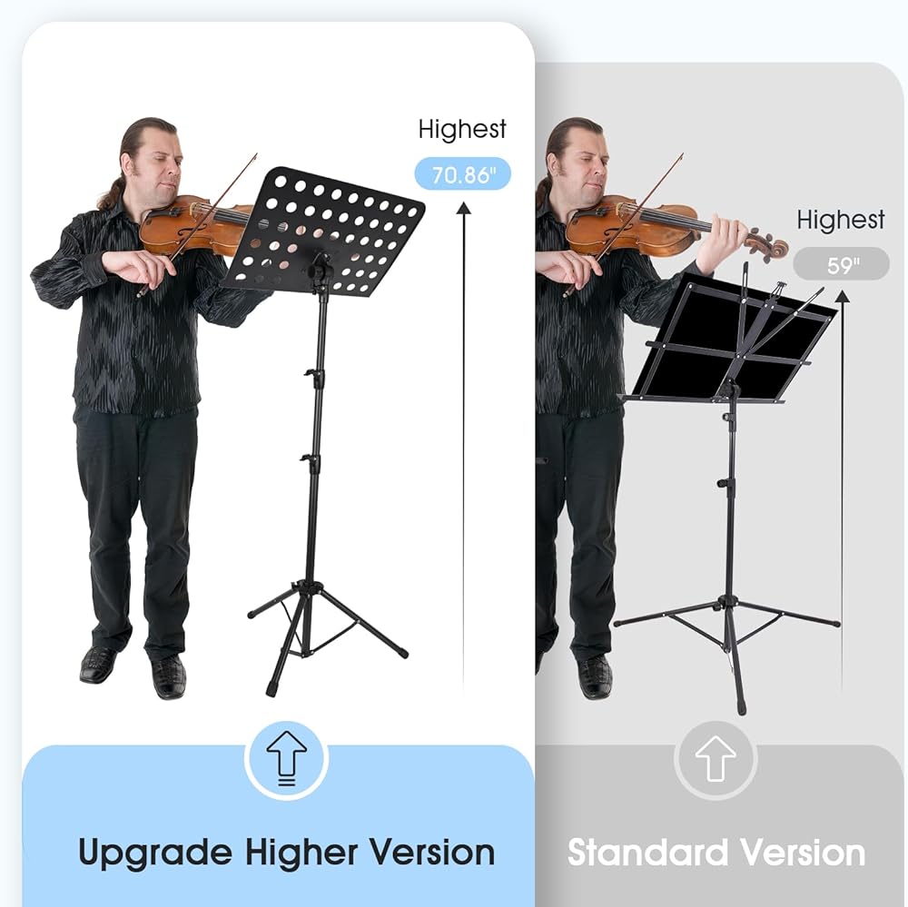 حامل الموسيقى للورقة، حامل الموسيقى المحمول القابل للطي 2 في 1، حامل كتب سطح المكتب قابل للتعديل مع حامل مشبك ورقة الموسيقى وحقيبة حمل (31.4 بوصة إلى 70.86 بوصة)