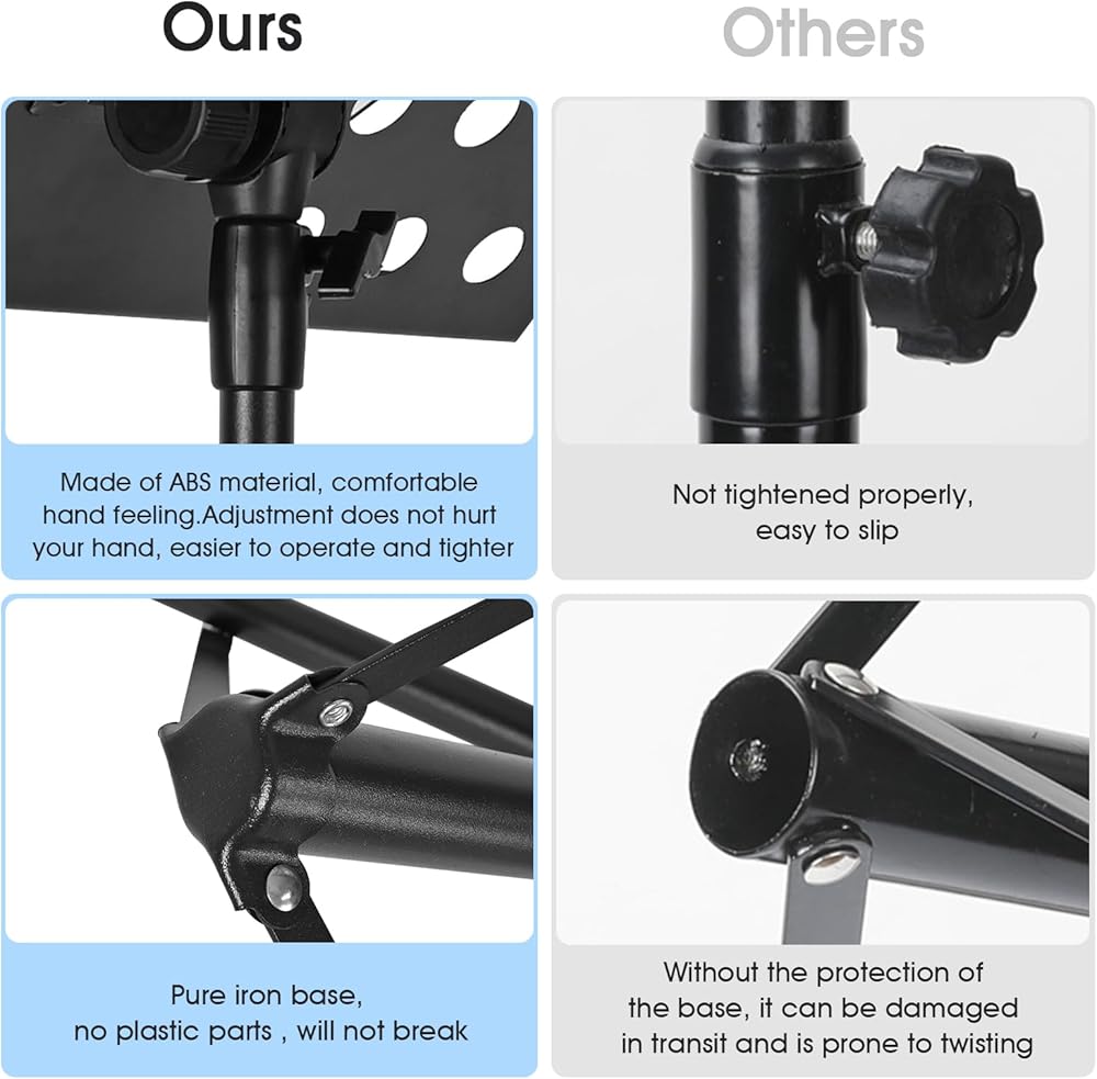 【قاعدة ثلاثية القوائم متينة ببصمة قدم أوسع】تصميم قاعدة من الحديد النقي من قطعة واحدة بدون أجزاء بلاستيكية لحل مشكلة سهولة الكسر، مما يجعل أرجل الحامل ثلاثي القوائم للموسيقى الورقية تمتد إلى الخارج بشكل ثابت. وسادات مطاطية سميكة في الجزء السفلي غير قابلة للانزلاق. وزيادة الاحتكاك لحماية الأرض.