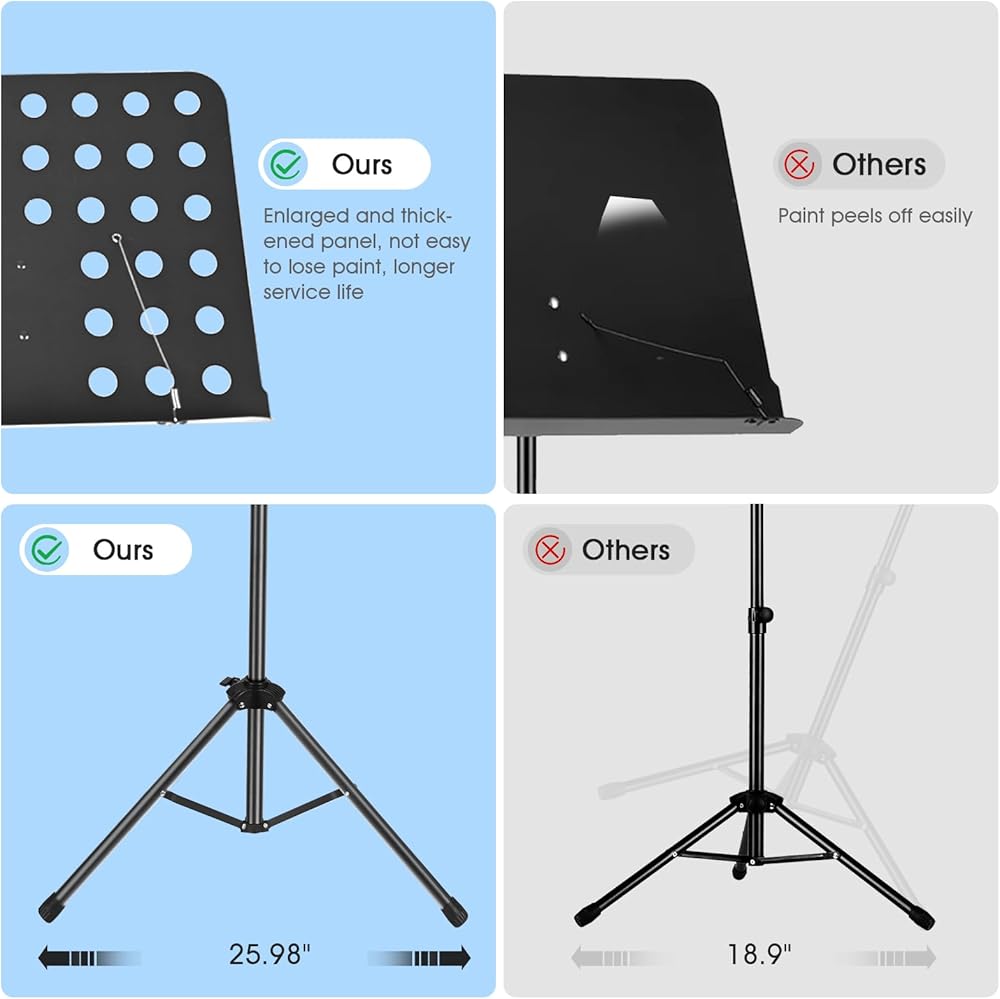 【محمول وقابل للطي】سريع التجميع وسهل التخزين مع حقيبة حمل، مما يجعله مناسبًا للسفر والمدرسة والفرقة والاستخدام المنزلي. مثالي للأوركسترا والجوقات وفرق الكنيسة والفصول الدراسية والتمارين المنزلية.