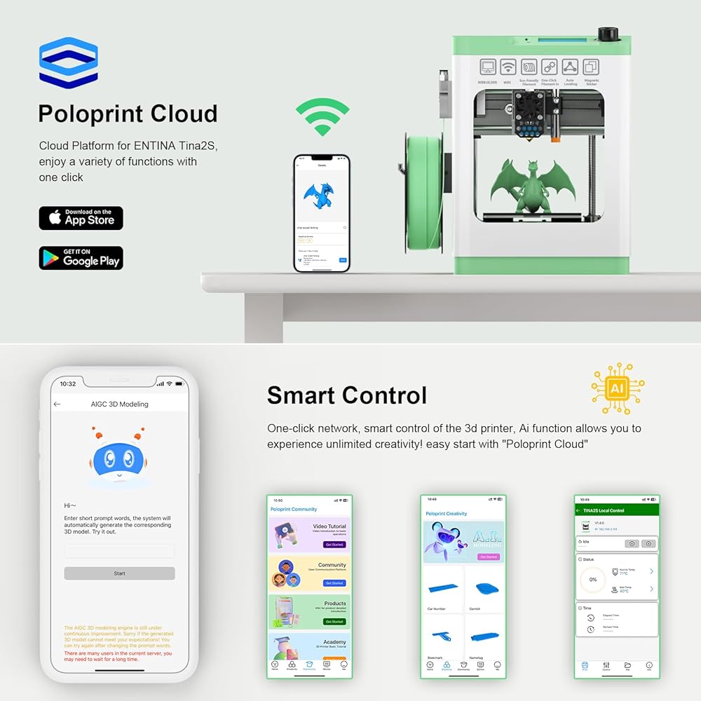 طباعة واي فاي مطورة: وحدة واي فاي مطورة مع سرعة نقل ملفات أسرع 5 مرات، ودعم نقل الملفات بشكل أسرع وأكثر استقرارًا للحصول على تجربة طباعة مثالية. تصميم شبكي مريح، استخدم تطبيق PP المحلي للتواصل بنقرة واحدة وقل وداعًا لإعدادات الشبكة المملة!
