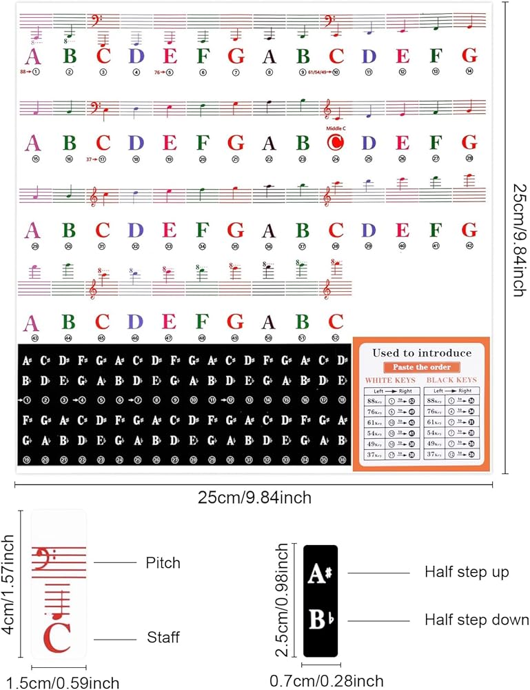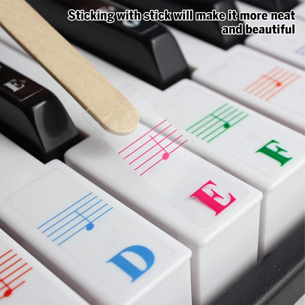 Package: You'll get 1 set of piano keyboard stickers with wooden stick and simple instructions. Piano note stickers are great as a practice and self-correction aid.