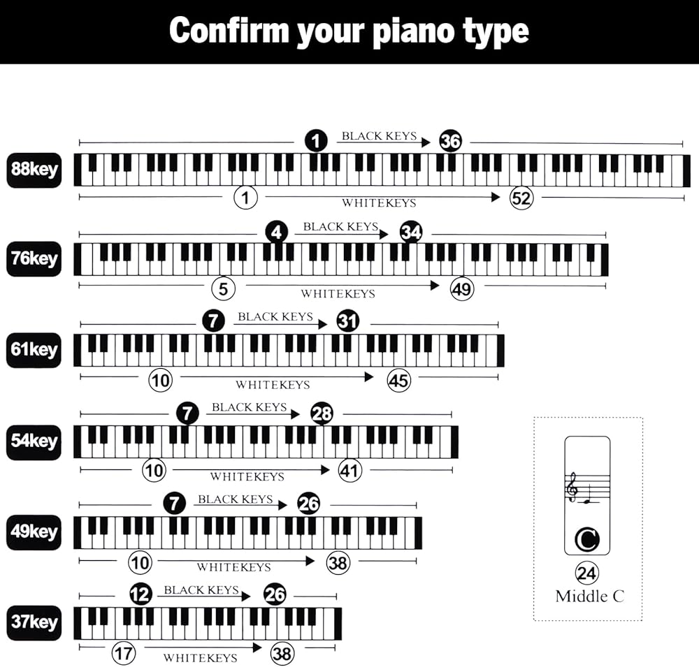 Perfect Size: Suitable for all pianos and keyboards with black and white keys 88/76/61/54/49/37.