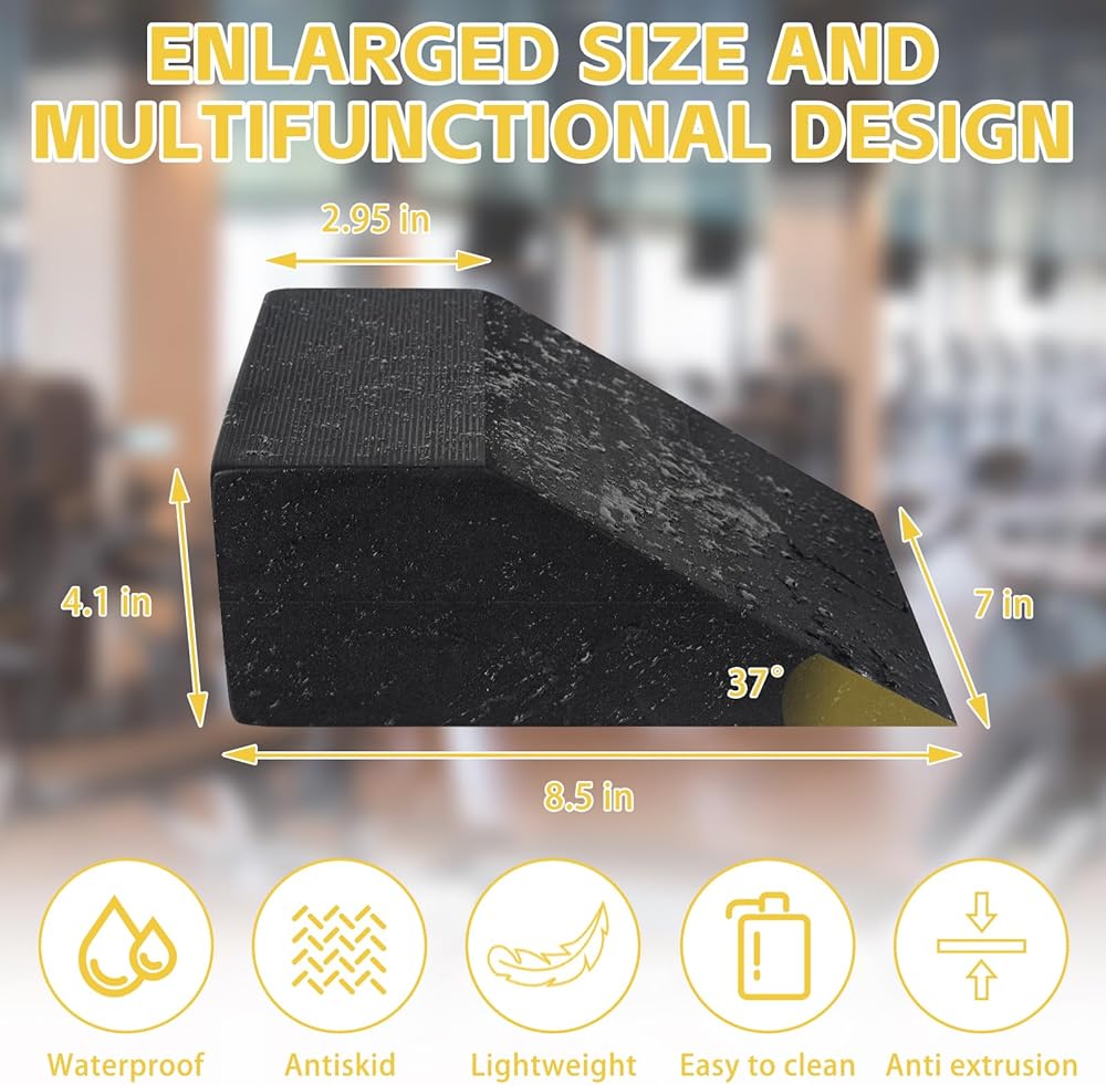 【إسفين كبير وسهل التنظيف】 يبلغ مقاس إسفين القرفصاء 8.5 بوصة × 7 بوصة × 4.1 بوصة وله زاوية 37 درجة. إسفين القرفصاء سهل الحمل ومناسب للسفر والمنزل والاستخدام المكتبي. تمديد الساق المحمولة منصات القرفصاء ومنحدرات تخفيف آلام الكعب سهلة التنظيف ولا تتطلب سوى المسح بمنشفة مبللة.