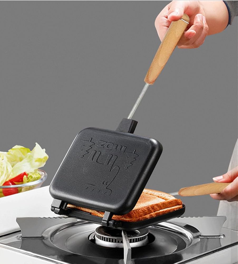 تطبيق واسع: مقلاة الألومنيوم الخاصة بنا مناسبة لصنع الساندويتشات والفطائر والشواء وشرائح اللحم والجبن المشوي والعجة والكلاب الساخنة والمزيد. يمكن استخدام صانع الساندويتش على موقد الغاز. ومع ذلك، لا يمكن استخدامه على مواقد الحث.