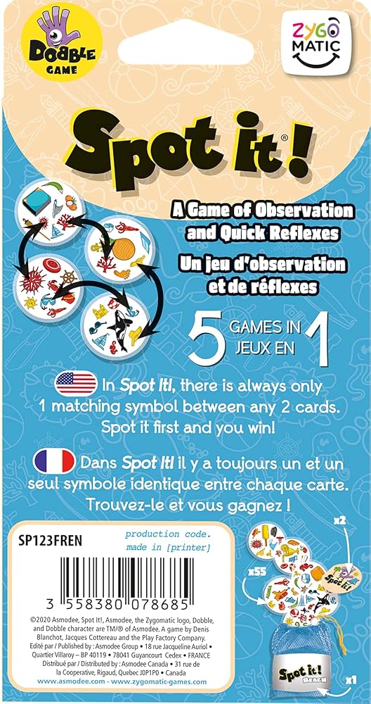 "Test your observational skills and hone your reflexes with the award-winning gameplay of Spot It! Waterproof, a game of lightning-fast choices. With dozens of awards and possible versions married to elegant gameplay, Spot It! has become a global phenomenon.