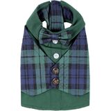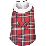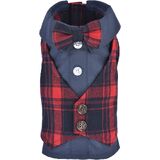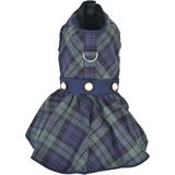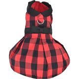 Our designer buffalo checkered dog dress will showcase your pet's elegance during the holidays and special occasions. This dress features the traditional buffalo red and black checkered pattern adorned with a black Peter Pan collar and belted bow.