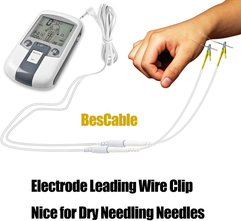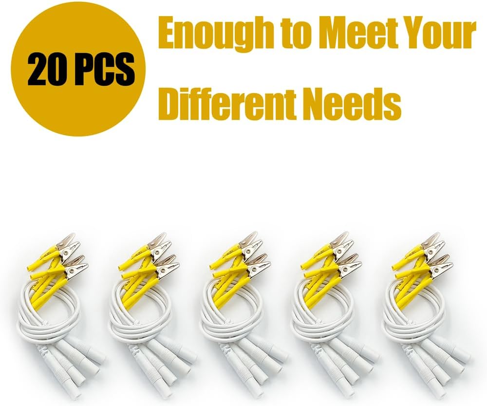 سلك كهربائي للإبر الجافة - BesCable 20 قطعة من أسلاك عشرات الأسلاك الرائدة مع مشابك التمساح لوحدة العلاج الطبيعي لوحدة عشرات - كابل دبوس أنثى إلى مشبك التمساح 2.0 مم