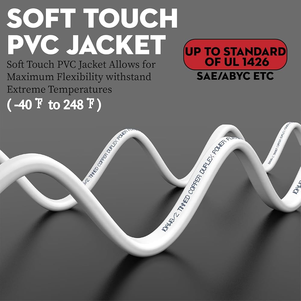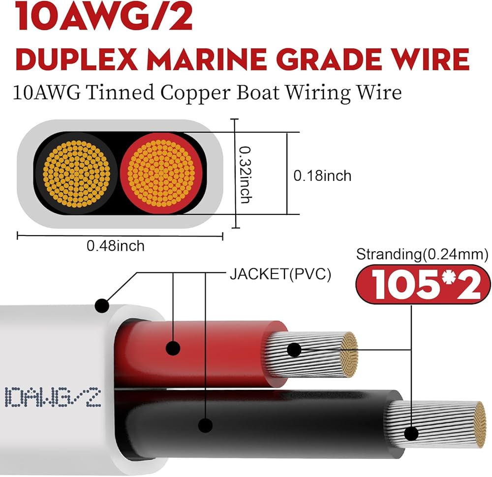 10 AWG Tinned Oxygen Free Copper:This 10 gauge marine wire combines the electrical conductivity of OFC (oxygen free copper) with corrosion-resistant tin, ensuring the best connection possible while avoiding rust and decay from constant exposure to marine environments.