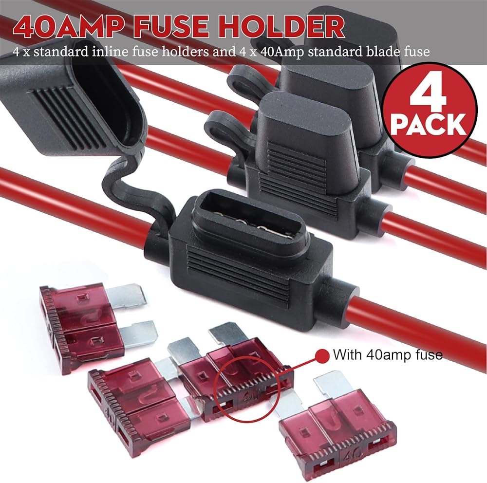 سلك بحري مزدوج 20 قدم 10 قياس (4 قطع حامل مصهر 40 أمبير / 20 قطعة العروات / أنبوب انكماش حراري 3:1) - نحاس OFC خالي من الأكسجين المعلب - للبحرية/القارب/السيارات/RV/التخييم/المقطورة