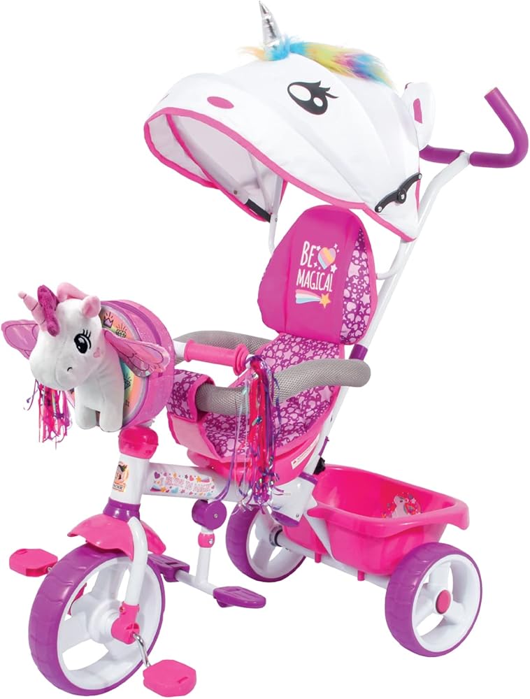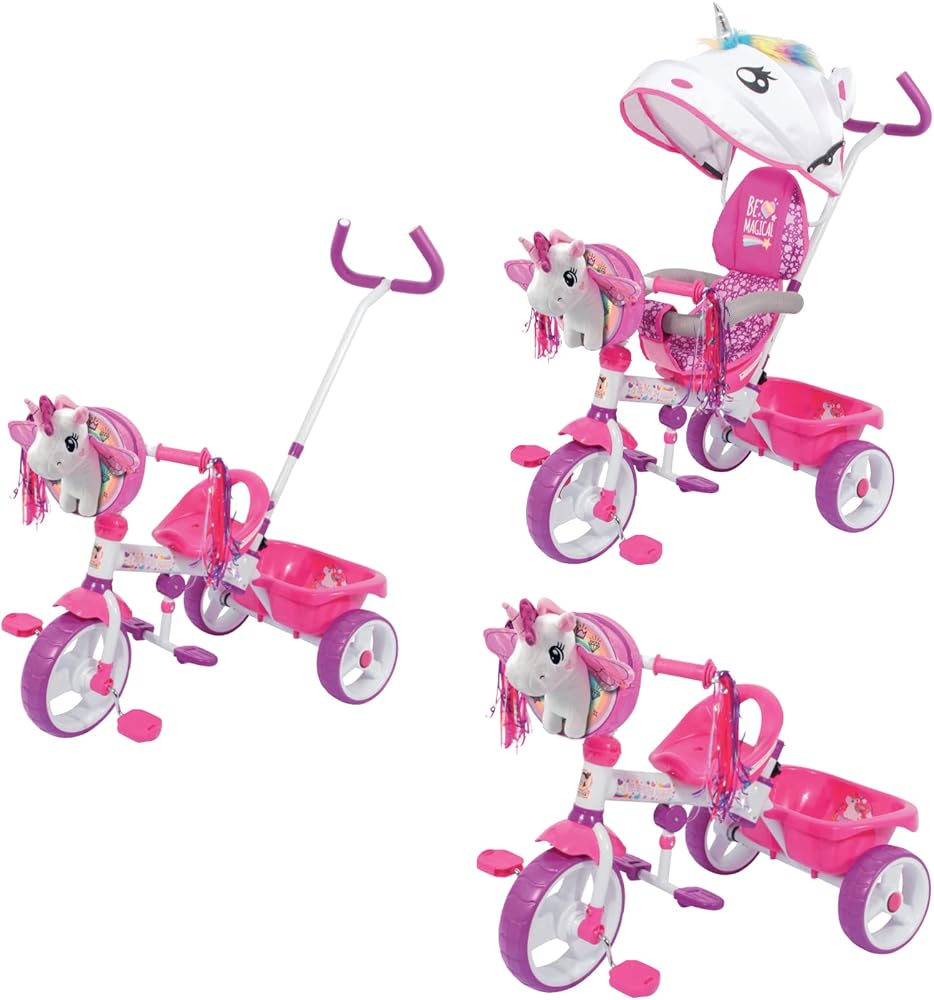 • Watch your little one grow with our cute Apache 3-in-1 Unicorn Tricycle. It seamlessly transforms from a cozy stroller to a training tricycle with a push bar, and finally into a tricycle for independent riding adventures.