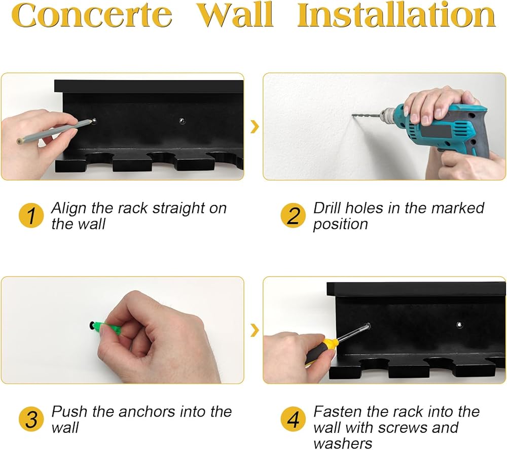【 سهلة التركيب 】تأتي رفوف مضرب كرة البيسبول اللينة مع براغي تثبيت، سهلة جدًا للتعليق على الحائط/الخزانة في المرآب الخاص بك. 4 فتحات ولكن يمكنها حمل 4 مضارب و3 براغي و3 مرساة. من السهل استخدام البراغي لتثبيته على الحائط أو أي سطح صلب في المخبأ والطابق السفلي والمنزل.