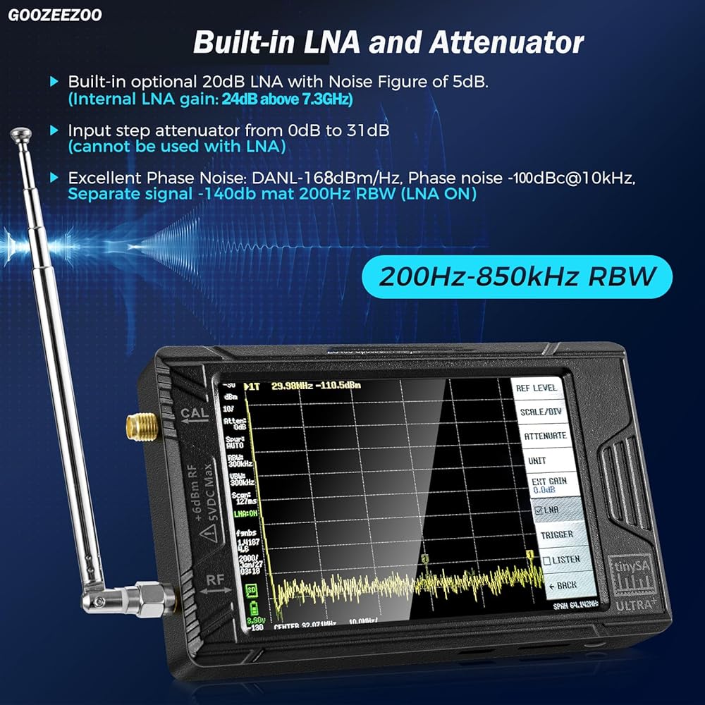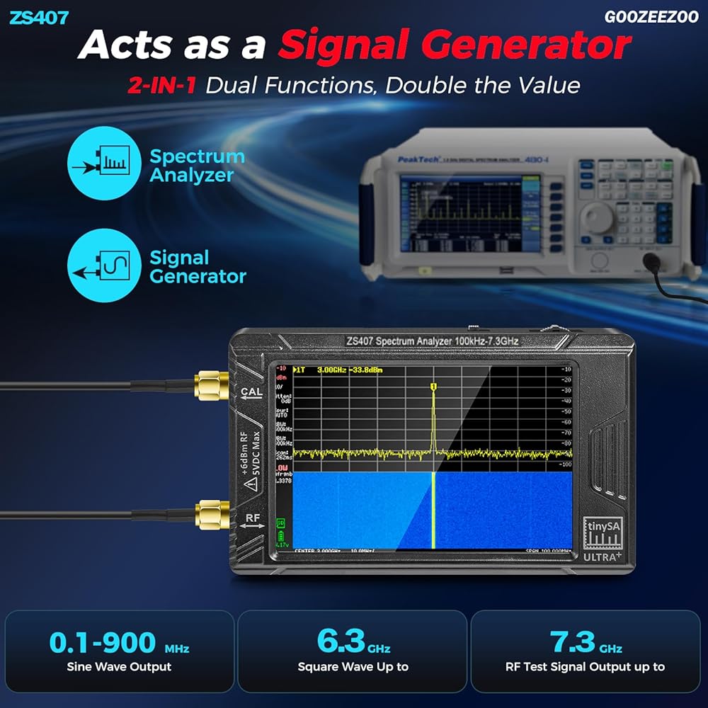 2025 HW V0.5.4 TINYSA ULTRA+ZS407 SPECTRUM Analyzer ، 4 بوصة 100 كيلو هرتز-7.3 جيجا هرتز محلل الإشارة 2-in-1