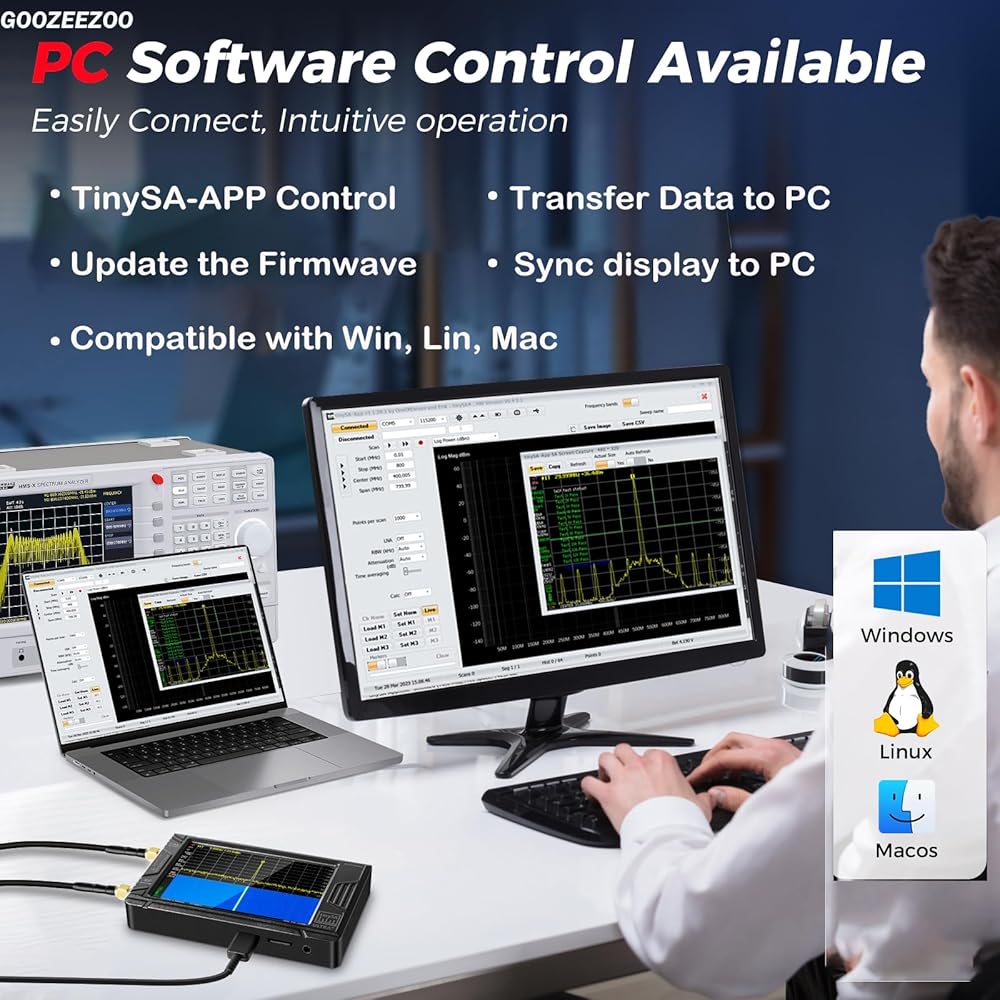 • [التحكم في الكمبيوتر] تنفذ واجهة USB البروتوكول التسلسلي عبر USB (CDC) وهناك مجموعة كبيرة من الأوامر التي يمكن استدعاؤها عبر الواجهة التسلسلية. يمكن استخدام هذا الأمر لإجراء قياسات أو تحديث الإعدادات الداخلية. سيتم تثبيت برنامج التشغيل لنظام Windows تلقائيًا بعد الاتصال بجهاز كمبيوتر يعمل بنظام Windows. برنامج التشغيل لنظام التشغيل Linux مدمج في النواة. يتوفر برنامجان للتحكم في tinysa. كلاهما قادر على التقاط شاشة tinysa