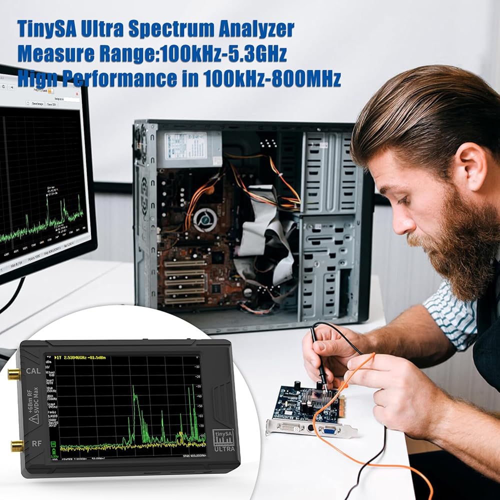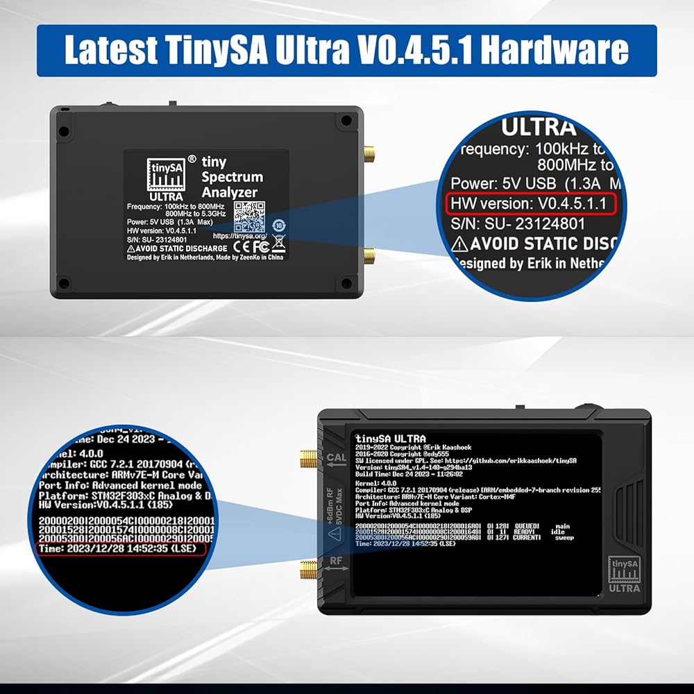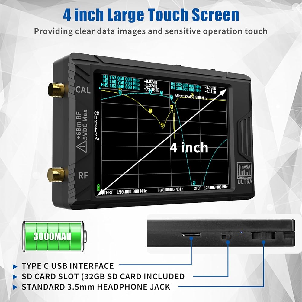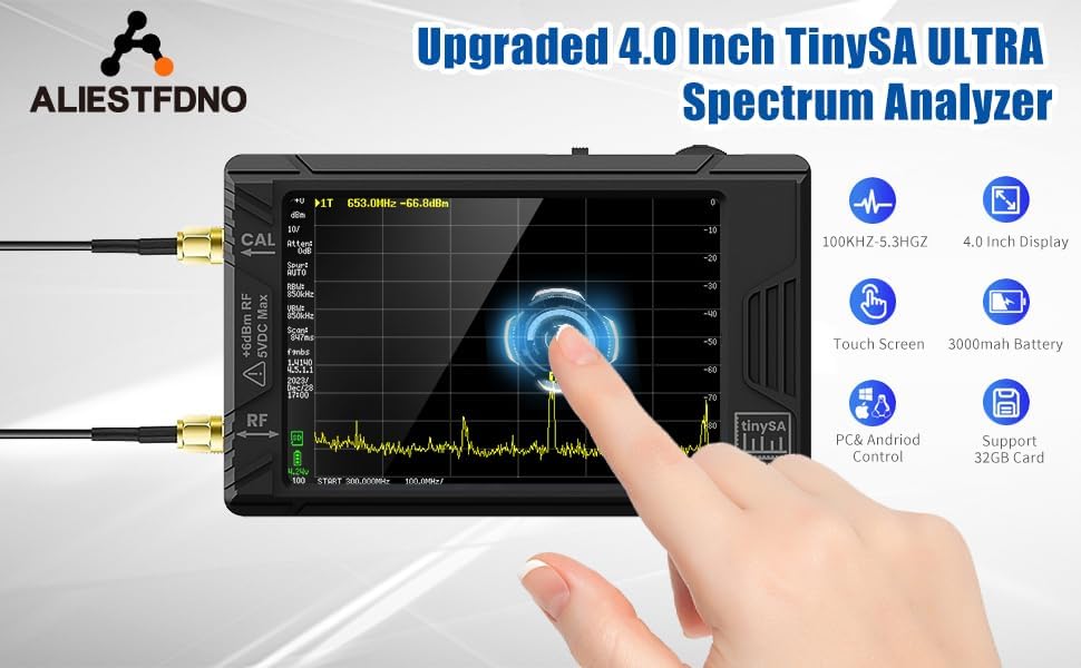 【2024 ترقية TinySA Ultra 】ALIESTFDNO الإصدار الجديد V0.4.5.1 محلل الطيف مع شاشة لمس كبيرة 4.0 بوصة 480 × 320، نطاق قياس واسع من 100 كيلو هرتز إلى 5.3 جيجا هرتز، مع وظيفة حماية ESD الجديدة، يتمتع المنتج بمستوى أعلى مضاد للكهرباء الساكنة وعمر خدمة أطول، وبطاقة SD صغيرة مدمجة بسعة 32 جيجا بايت، يمكنها تسجيل البيانات مباشرة على البطاقة، وهو أمر مناسب لمشاركة البيانات وتخزينها.