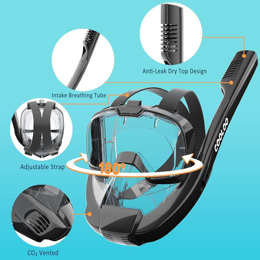 قناع الغطس لكامل الوجه من COOLOO، معدات الغطس للبالغين والشباب، تصميم الغطس الجانبي - نظام تنفس أكثر أمانًا، مجموعة الغطس ذات رؤية بانورامية 180 درجة، مضادة للضباب ومضادة للتسرب