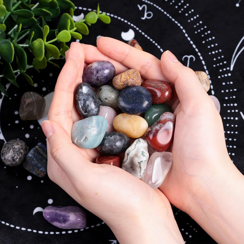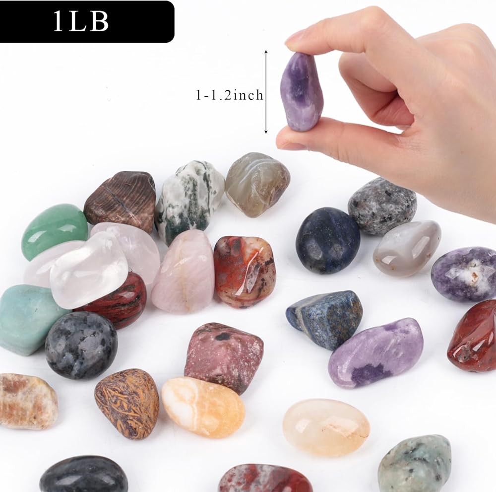 عبوة قيمة للغاية - سوف تحصل على حوالي 1 رطل (450 جم) من الأحجار الطبيعية المصقولة، كل منها حوالي 1 بوصة - 1.2 بوصة، مع مجموعة واسعة من الألوان والأنواع، تلبي احتياجاتك المتنوعة.