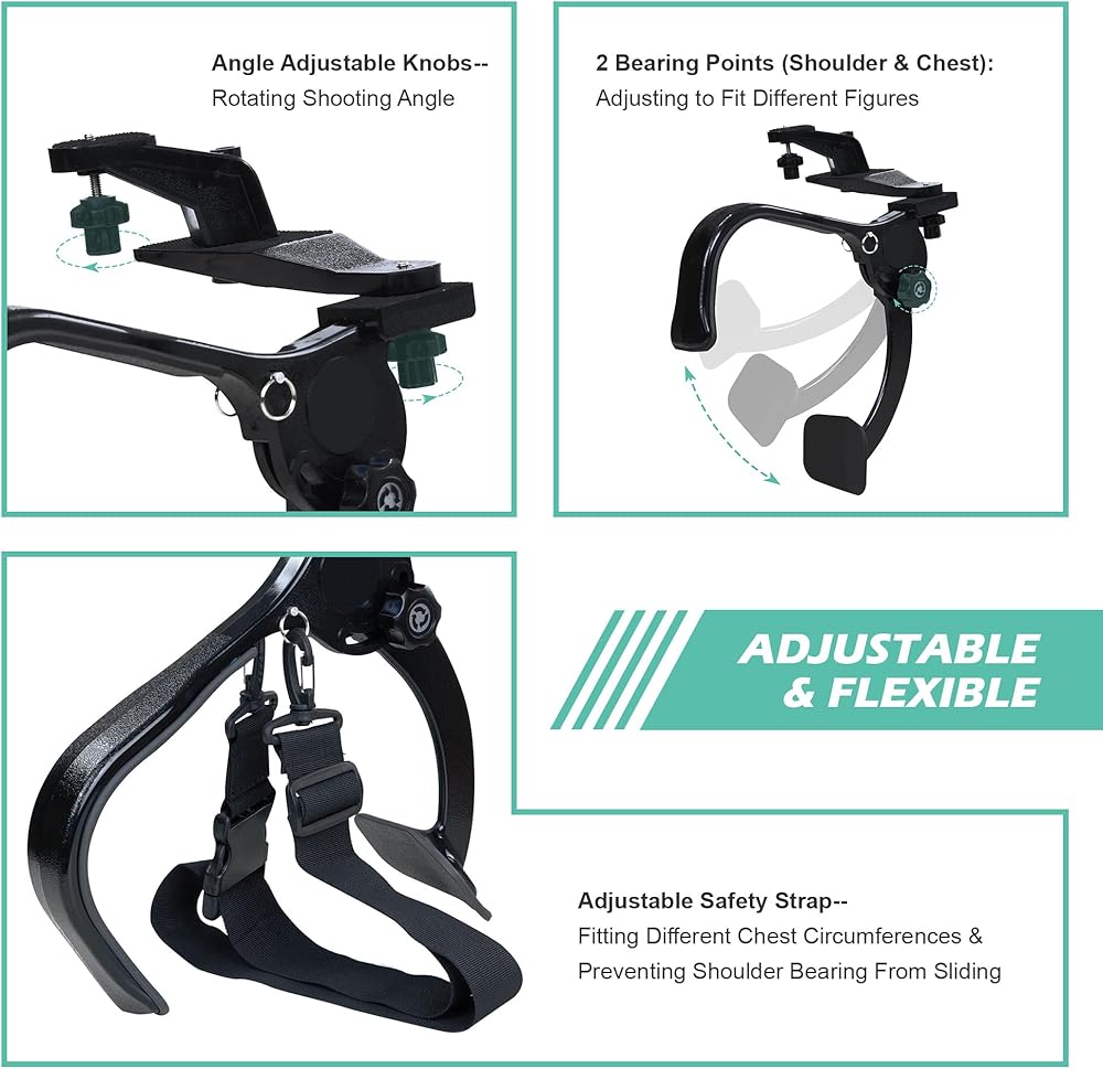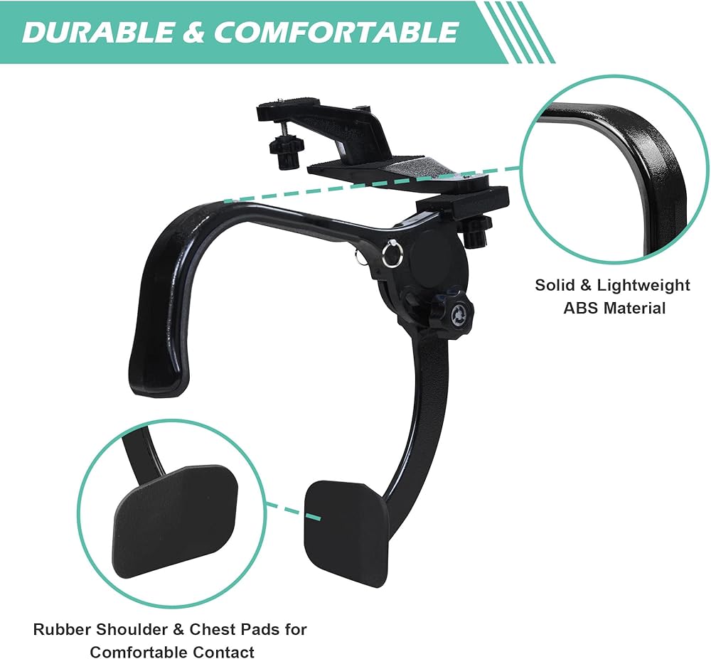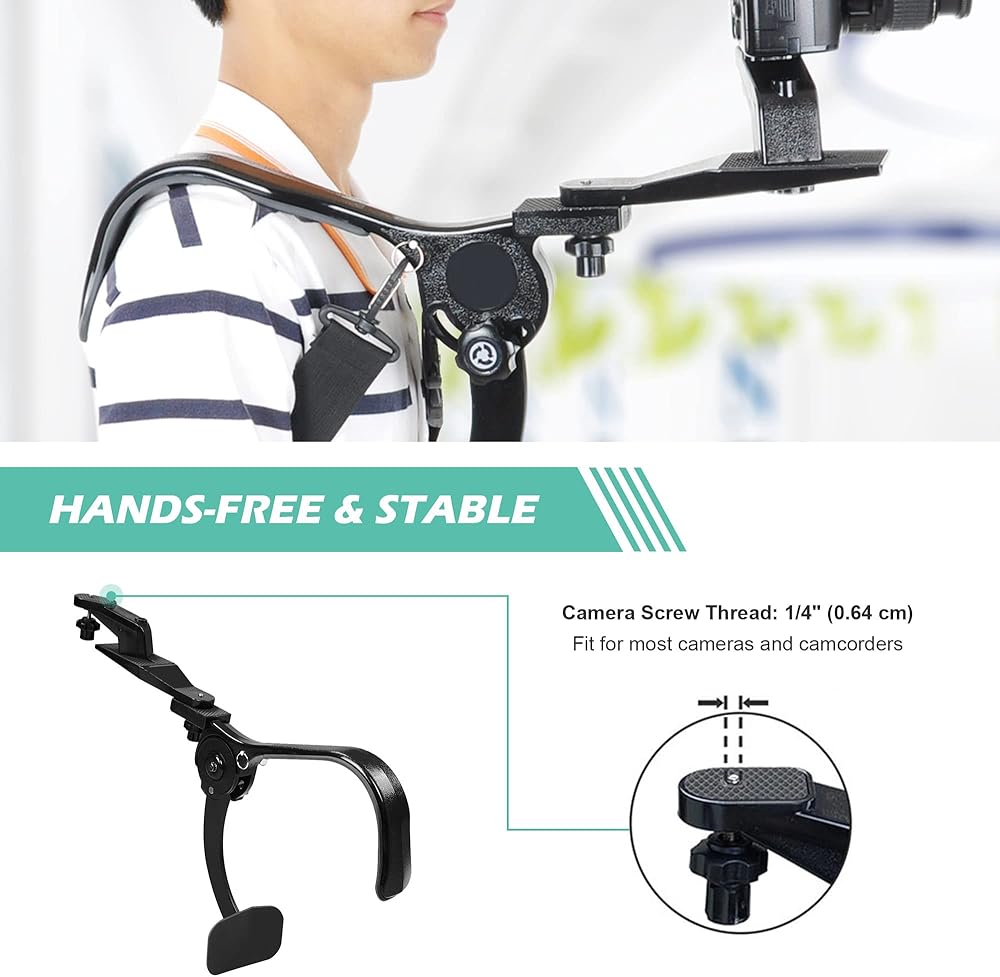 المزايا: - مثبت دعم الكتف بدون استخدام اليدين مع سن لولبي 1/4 انش والذي يتوافق مع معظم الكاميرات وكاميرات الفيديو - قابل للتعديل للارتداء - حزام مطاطي مع حزام لضبط الطول وفقًا لمحيط الصدر الفردي. زاوية نقطتي حمل (الكتف والصدر) قابلة للتعديل لتناسب الأشكال المختلفة بشكل صحيح - مريحة في الاستخدام - وسائد مطاطية للكتف والصدر لتجنب الكدمات من الاستخدام لفترة طويلة - حامل كاميرا قابل للدوران للحصول على أفضل زاوية للرؤية، سهل الحمل - تصميم قابل للفصل وحقيبة حمل للتصوير في الهواء الطلق - مصنوعة من أكريلونتريل بوتادين ستايرين خفيف الوزن ولكنه صلب ومتين. المواصفات: - الأبعاد الكلية (LWH): 14 9/16 15/16 15 3/4 (37 5 40 سم) - بحد أقصى. طول حزام الكتف: 37 6/16 (95 سم) - بحد أقصى. وزن التحميل: 3.0 كجم - برغي الكاميرا: 1/4 بوصة (0.64 سم) - المادة: ABS، محتويات العبوة: - 1 × وسادة دعم الكتف- 1 × حزام الكتف- 2 × حامل كاميرا - 1 × حقيبة حمل
