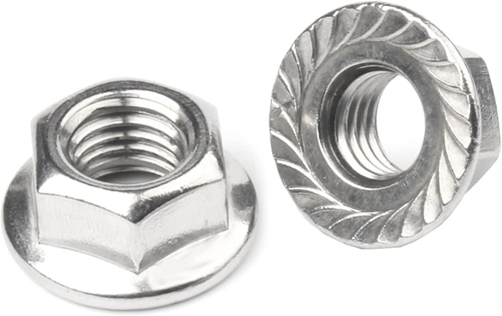 🍩Easy To Use: There is a wide flange at one end of the flange nut, which increases the bearing surface of the nut and is not easy to loosen.Serrations help grip the material surface for easy installation and provide mild vibration resistance.