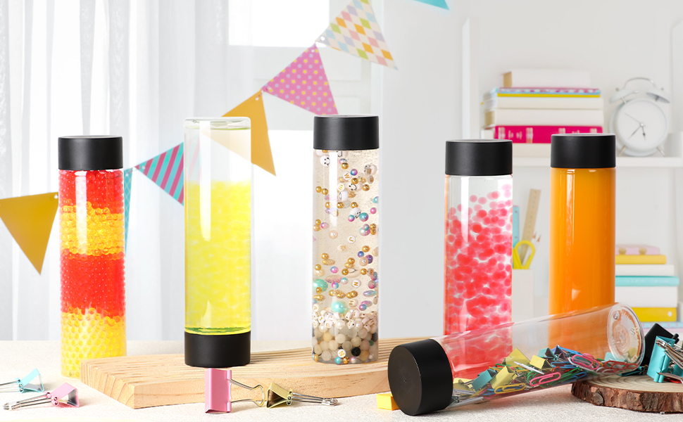 إبداع غير محدود: توفر الزجاجات الحسية التي تصنعها بنفسك فرصة لا نهاية لها للإبداع والخيال. باستخدام لوحة قماشية فارغة، يمكنك تخصيص المحتويات والألوان والأنسجة لإنشاء تجربة حسية فريدة من نوعها.