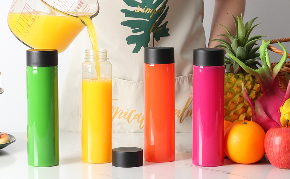 زجاجات عصير مثالية للتخزين: يمكن تخزين مجموعة متنوعة من السوائل مثل العصير والحليب والماء والمزيد للمشي لمسافات طويلة والتخييم والسفر.