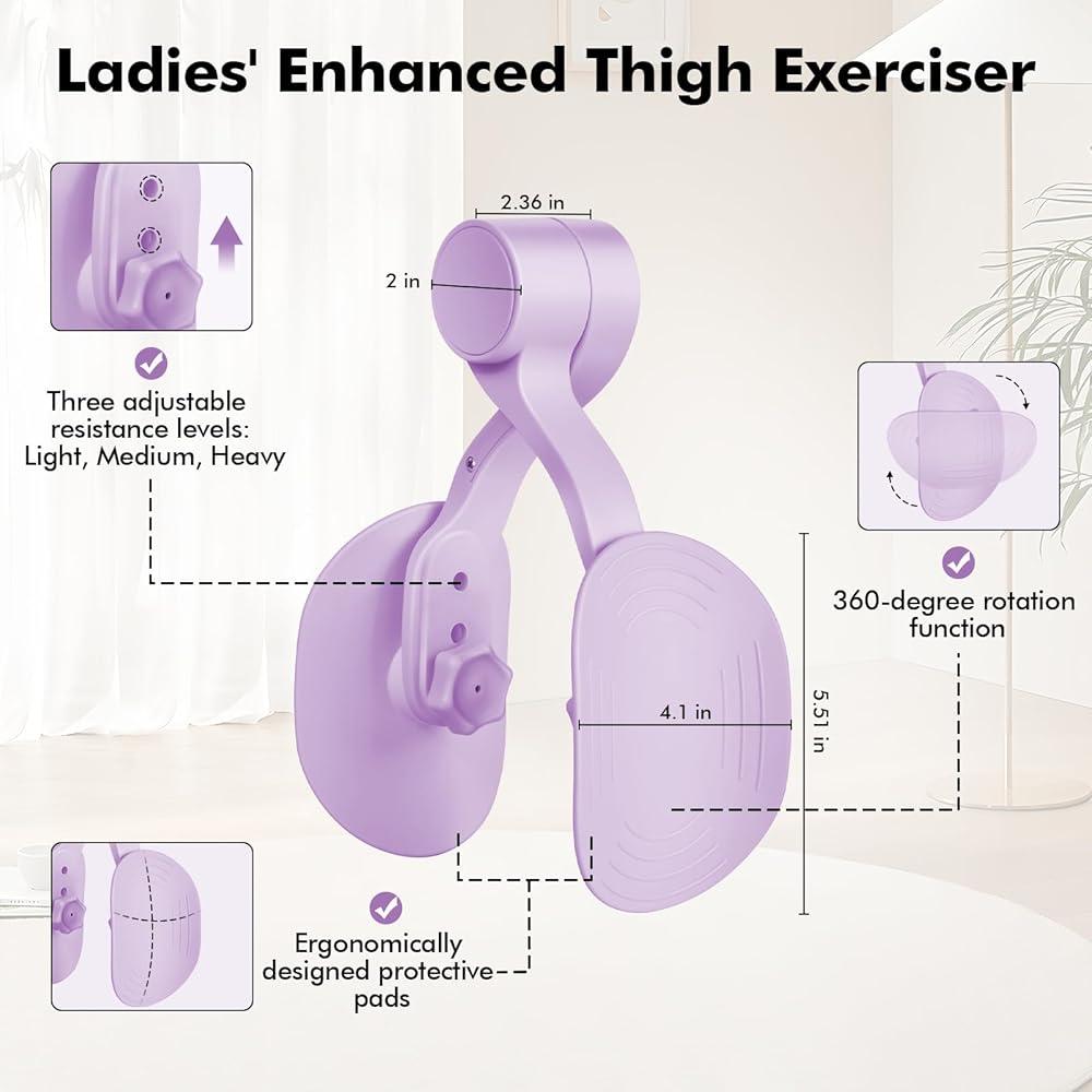 سيد الفخذ للسيدات: مدرب مقاومة معزز للورك والحوض، معدات تمرين الفخذ الداخلي، منتجات تمرين كيجل للصالة الرياضية المنزلية (بنفسجي)