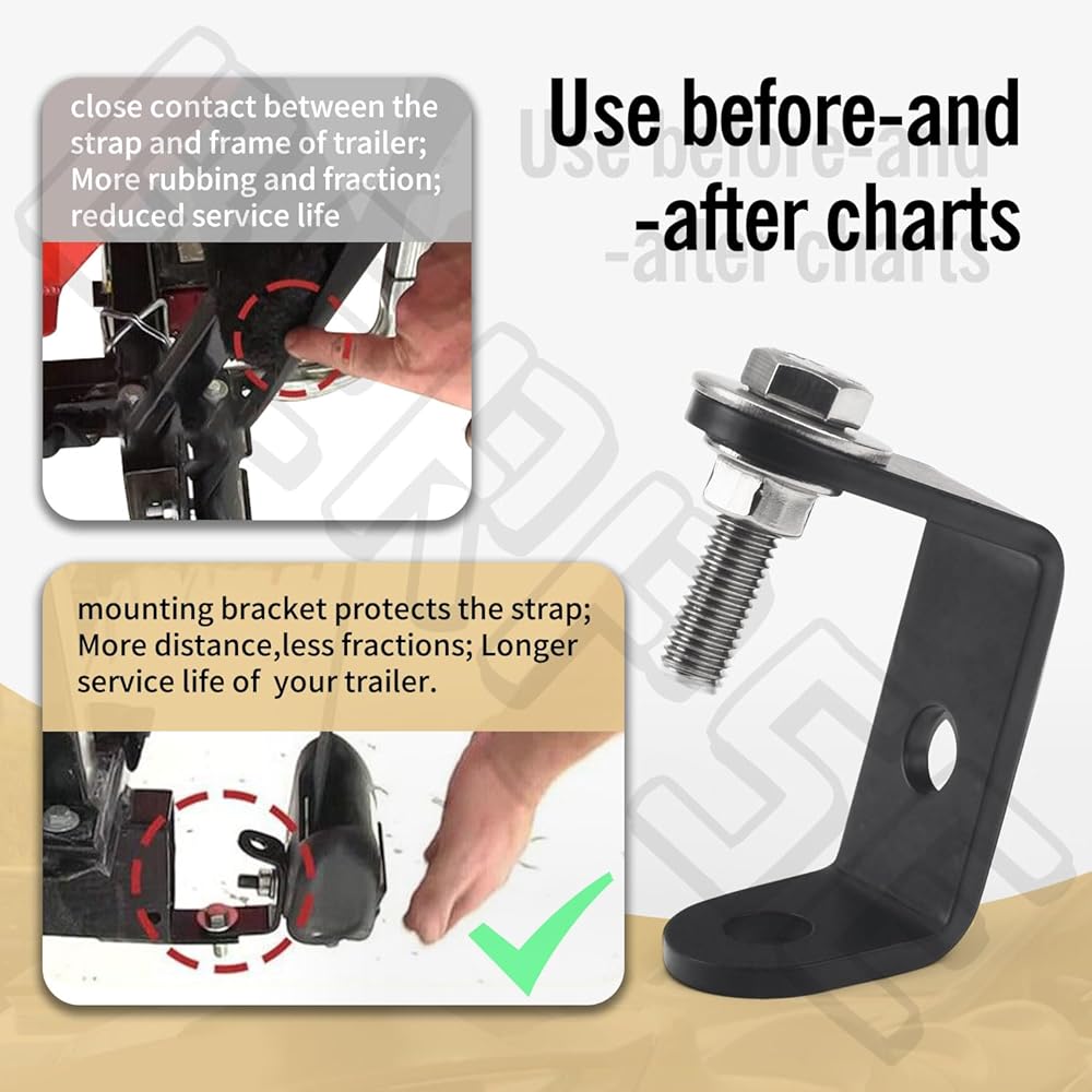 Before: close contact between the strap and frame of trailer; More rubbing and fraction; reduced service life; After: mounting bracket protects the strap; More distance,less fractions; Longer service life of your trailer.