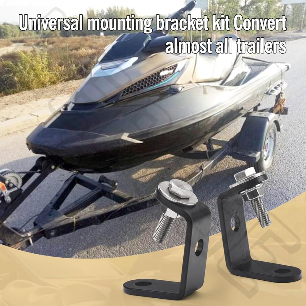 The 3-sided bracket design is a universal mounting bracket kit, with several different ways to attach the boat buckle, almost any trailer's existing mounting tabs, and can be used with the retractable straps.