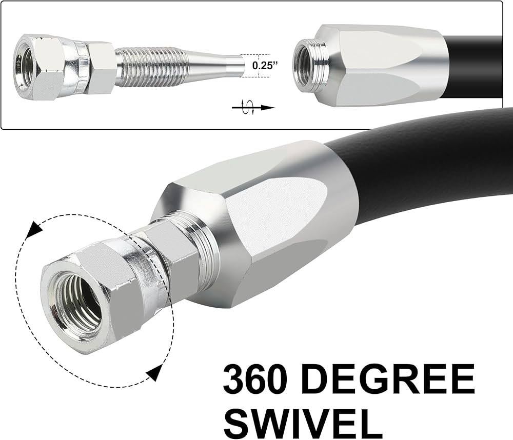 تم تصميم تركيبات الخراطيم الهيدروليكية القابلة لإعادة الاستخدام لإصلاح الخراطيم الهيدروليكية المتسربة أو لاستخدامها في مجموعات الخراطيم الهيدروليكية الجديدة، ولكن لا تستخدم على خرطوم التزلج عالي الضغط.