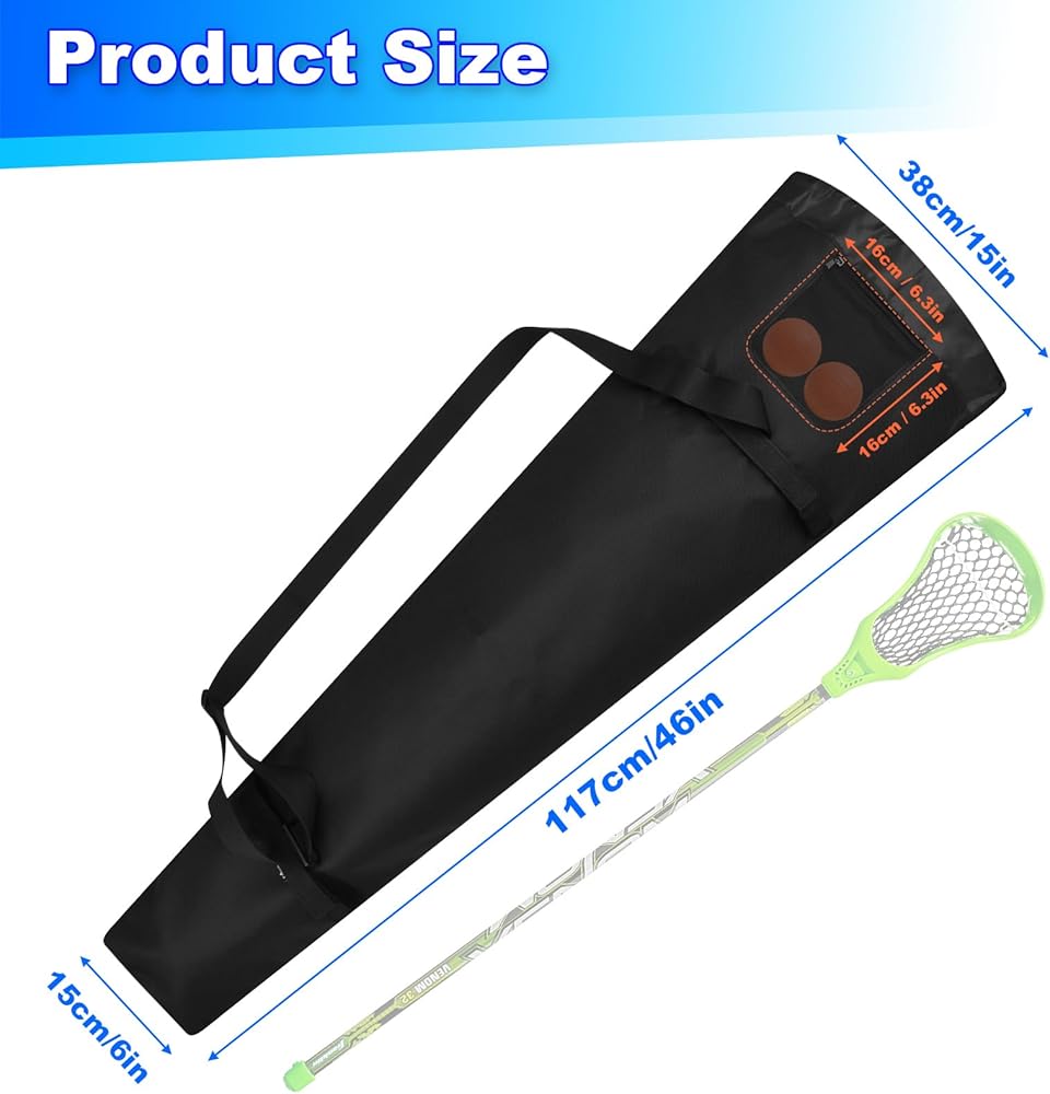 • غرفة تخزين كبيرة - يمكن لحقيبة عصا اللاكروس الخاصة بنا أن تحمل 2 عصا لاكروس يصل حجمها إلى 46 بوصة، وحقيبة داخلية بسحاب لحمل الأشياء الصغيرة مثل الكرات والمفاتيح وبطاقات الهوية وما إلى ذلك. اجعل أغراضك منظمة ويسهل الوصول إليها وتخزينها.