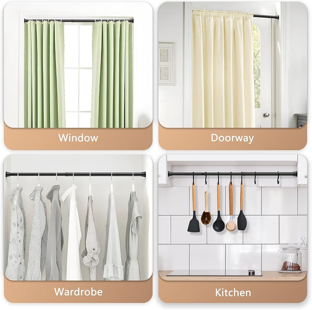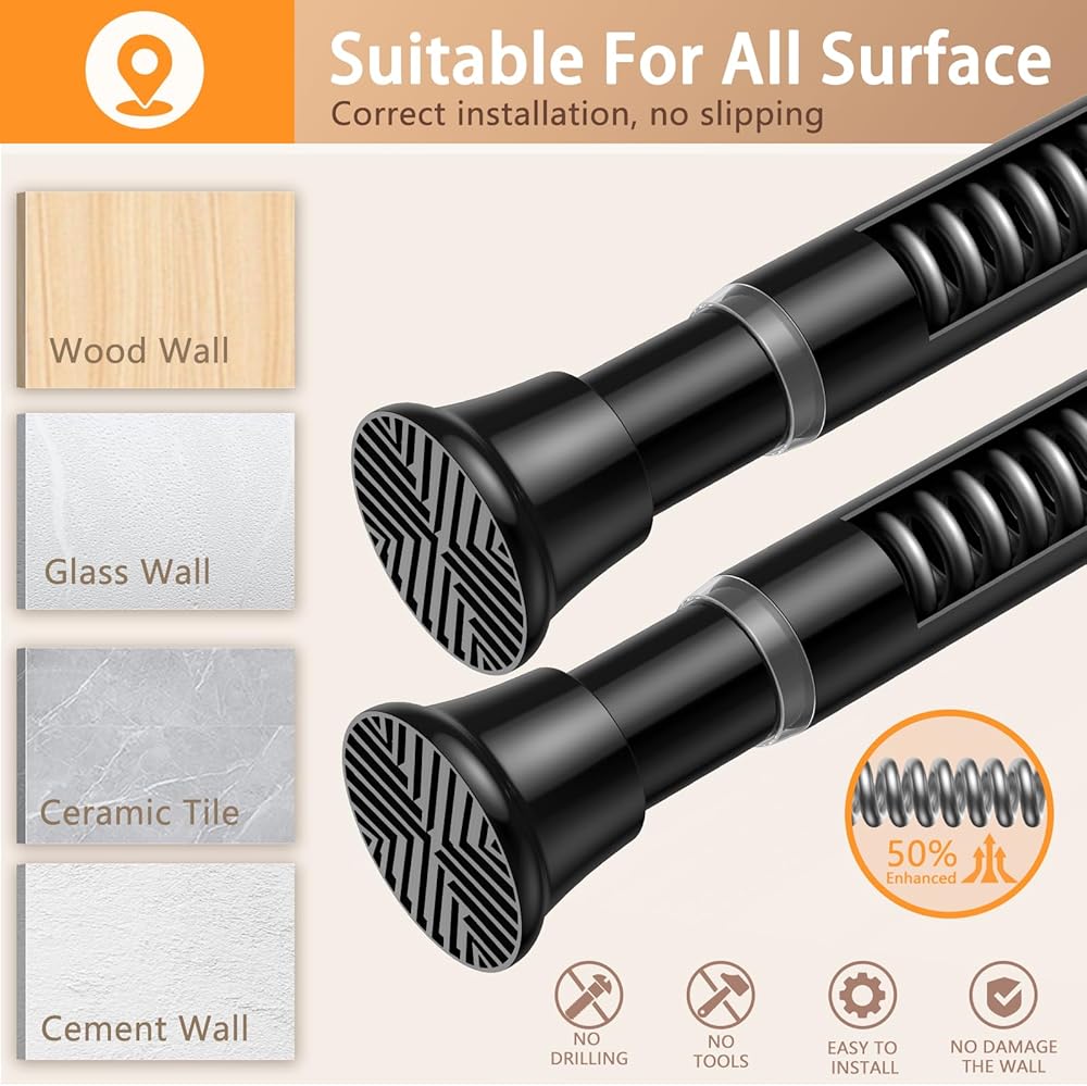 【لا حاجة للثقب】 - يوفر قضيب الستارة الزنبركي تركيبًا بدون ثقب أو أدوات لتعليق الستائر لمنع ضوء الشمس أو لقضبان ستائر الأبواب للحفاظ على الخصوصية، ومناسب للخزائن والمطابخ على حد سواء. سريع الإعداد، فهو يجلب إحساسًا بالراحة والأناقة والراحة لمنزلك.