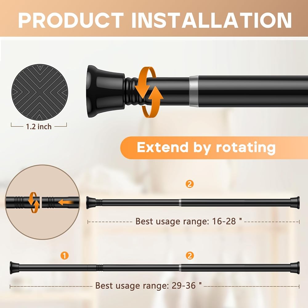 【تعديل مرن】 - يتميز بتصميم تمديد قابل للتوسيع، ويمكن دمج قضيب الستارة القابل للتعديل الخاص بنا ليمتد من 23 بوصة إلى 48 بوصة. يوصى باستخدامه في نطاق 23 إلى 46.5 بوصة لضمان أفضل تأثير وتجربة استخدام.